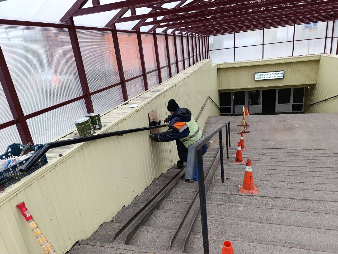 -окраска поручней и пандусов на пл. Восстания (подземный переход);