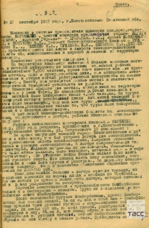 Речь также идет о захоронениях на территории константиновского химзавода в общей сложности почти 8 000 человек, погибших от пыток и истязаний.