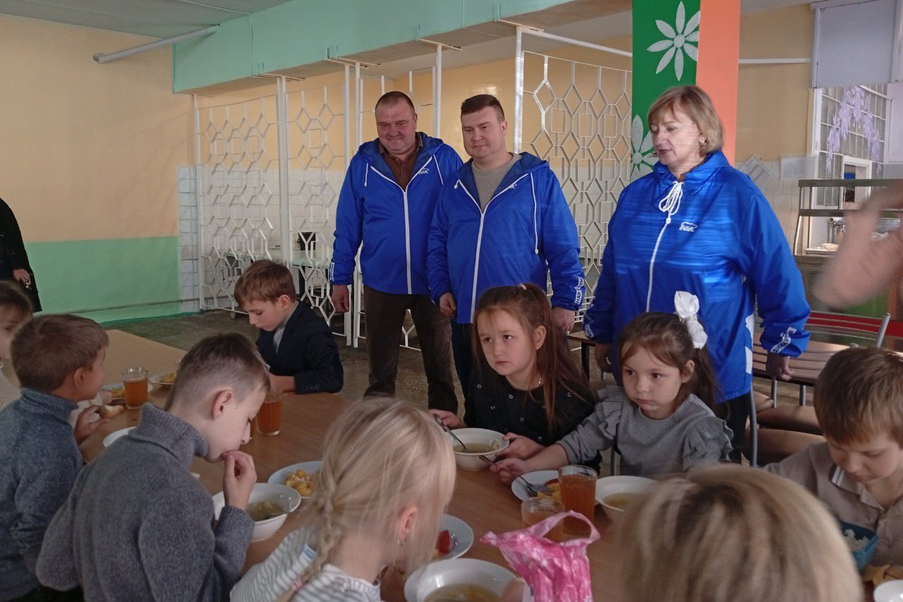 Александр Черников прошёл по столовой, пообщался с персоналом, заглянул на кухню. Проверили, соблюдаются ли санитарные нормы, как выглядит меню, и довольны ли дети тем, что им предлагают. В итоге – всё в порядке. Чисто, аккуратно, еда горячая и аппетитная. Дети улыбаются, обедают с удовольствием.