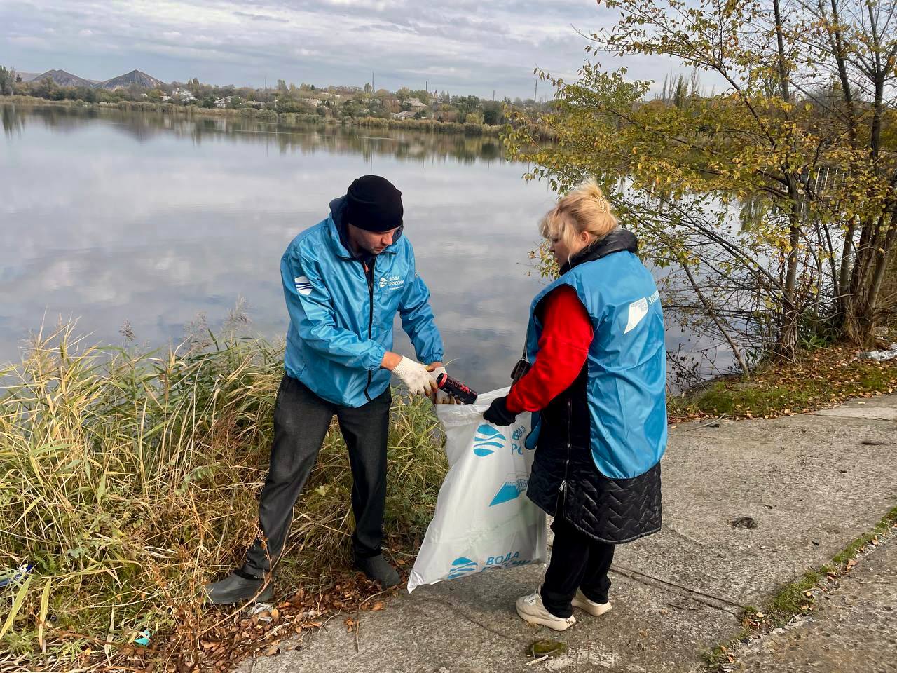 Приводили в порядок прибрежную зону пруда «Алексеевский». Был собран штучный мусор, удалены сухостой и поросль, убрана листва.