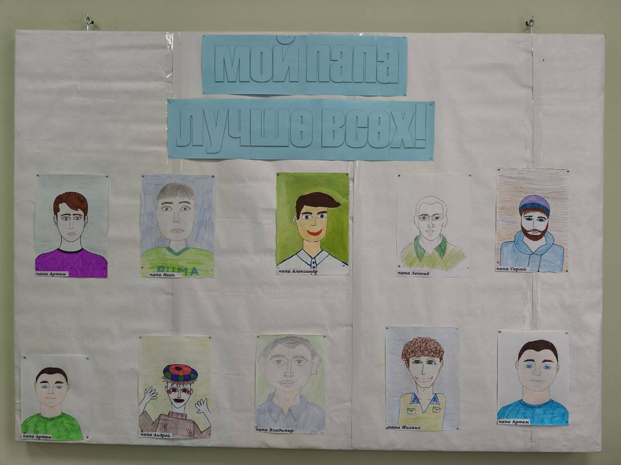 Здесь можно увидеть портреты пап — сильных, добрых и самых любимых. Каждый рисунок наполнен теплом, гордостью и безграничной детской любовью.