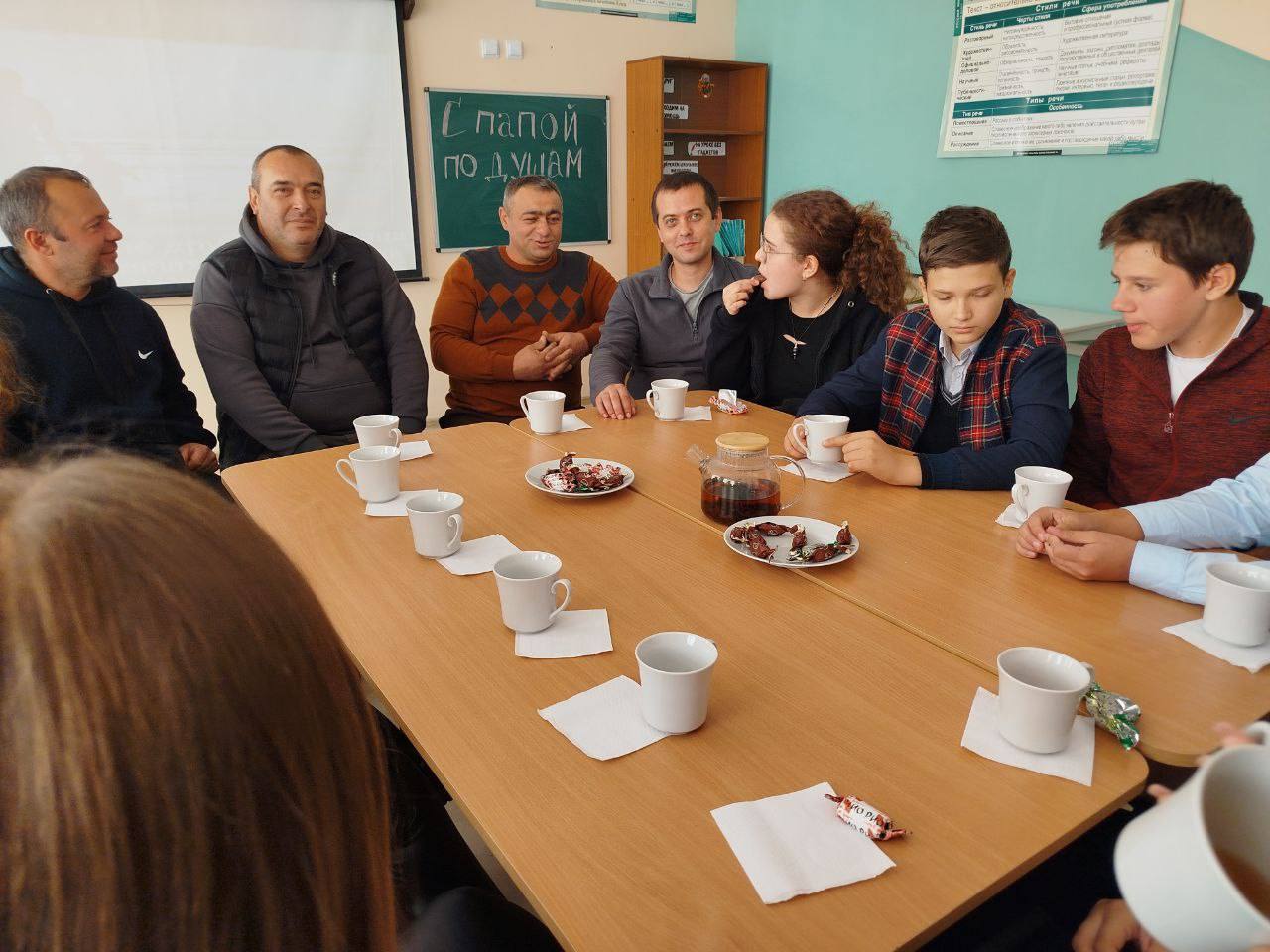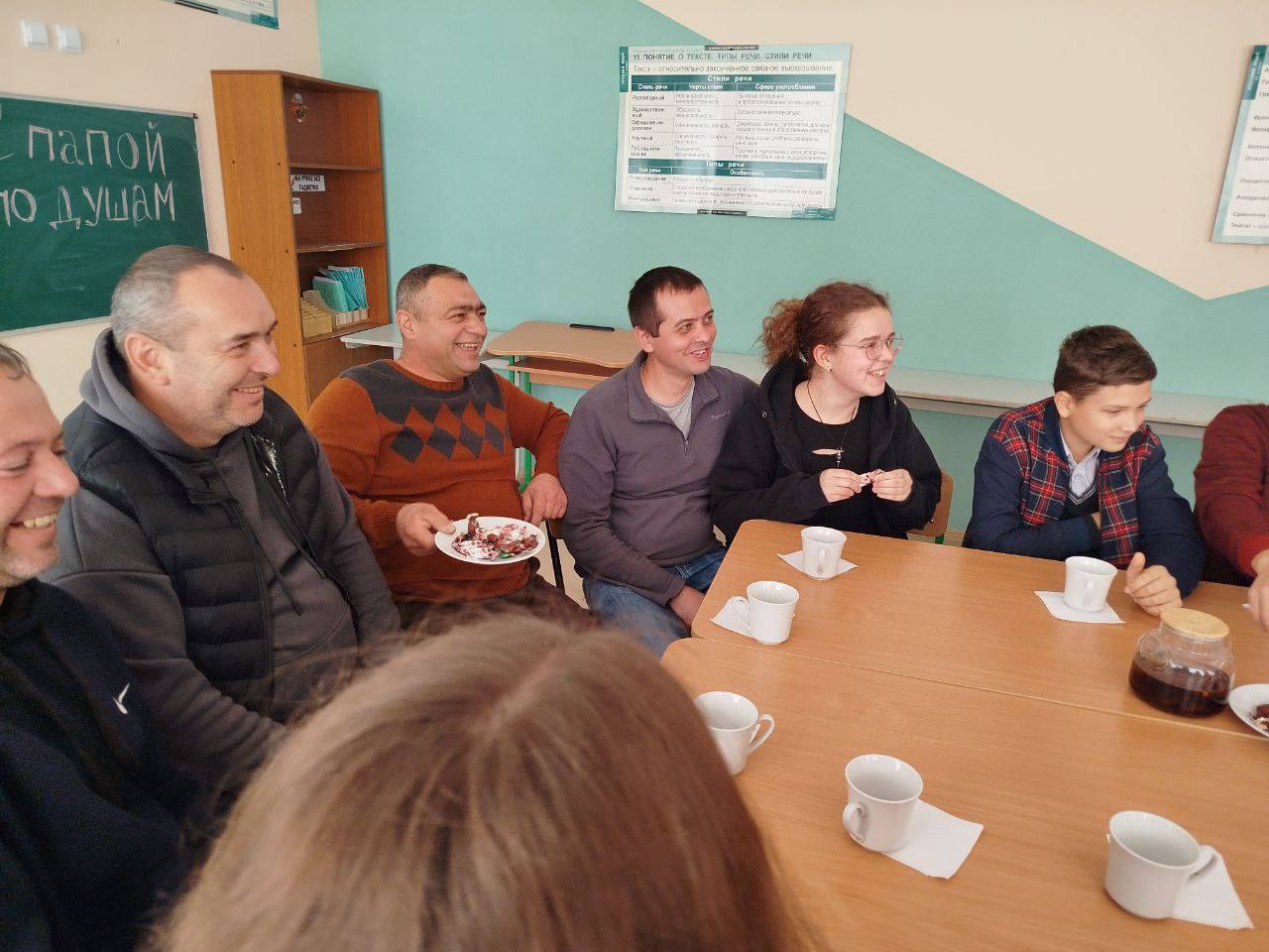 В 9 классе состоялась теплая встреча отцов за чашкой чая. В доверительной беседе «Что значит быть отцом сегодня?» папы обсуждали важные темы: эмоциональную вовлеченность в жизнь детей, равноправие в семье, баланс между работой и семейными обязанностями. Участники подчеркивали, что современный отец — это не только добытчик, но и эмоционально близкий человек, активный участник воспитания.