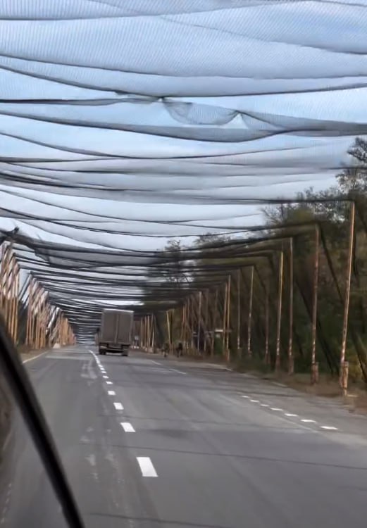 На кадрах видно, что движение у противника по-прежнему бойкое. Но в сетке уже зияют дыры, а вдоль дорог выставлены бетонные пирамидки, соединённые тросом — отчаянная попытка обезопасить хоть какие-то маршруты.