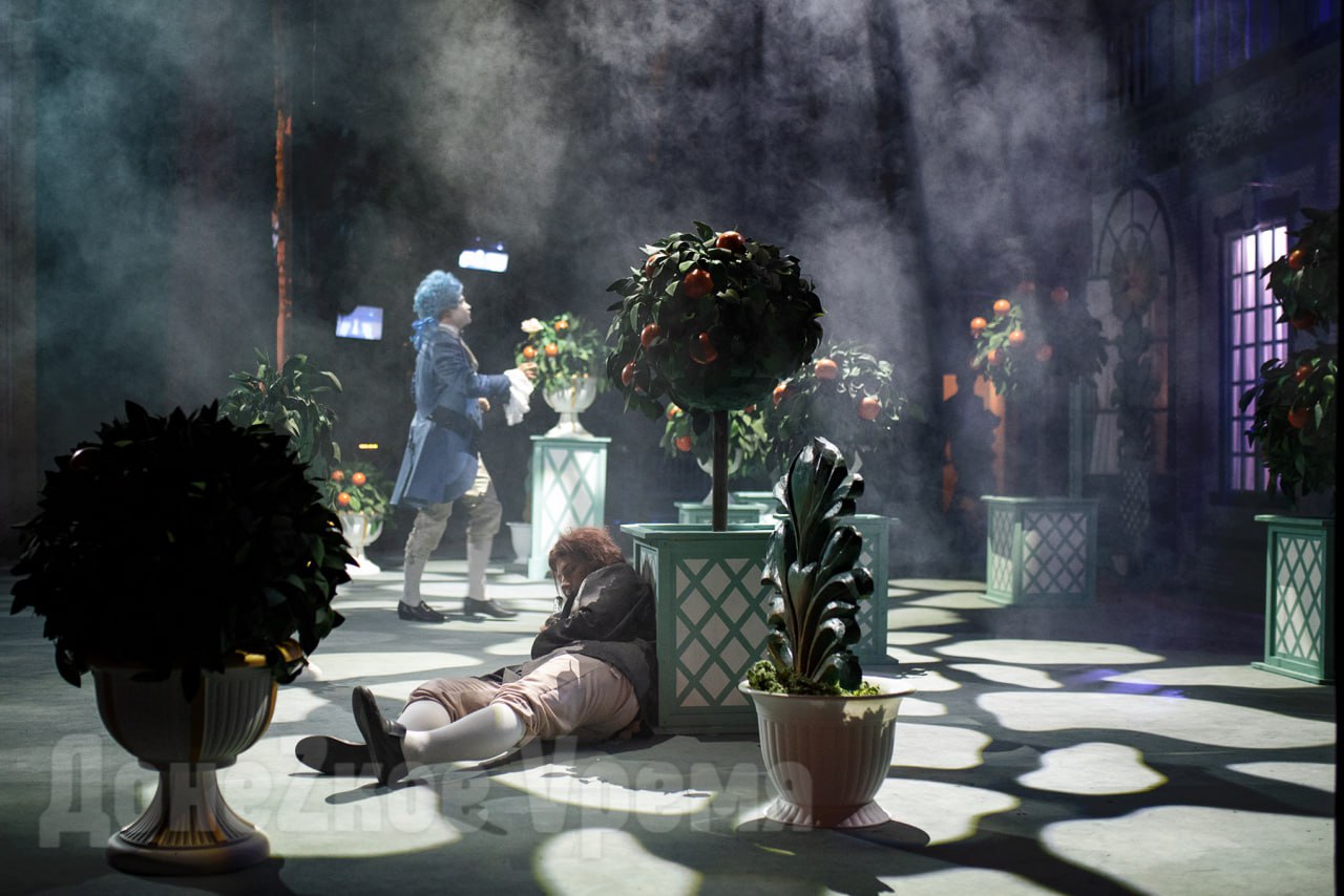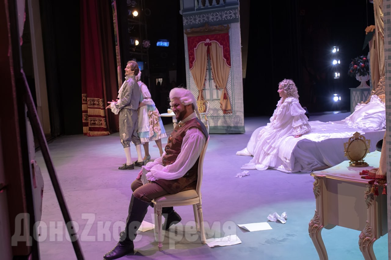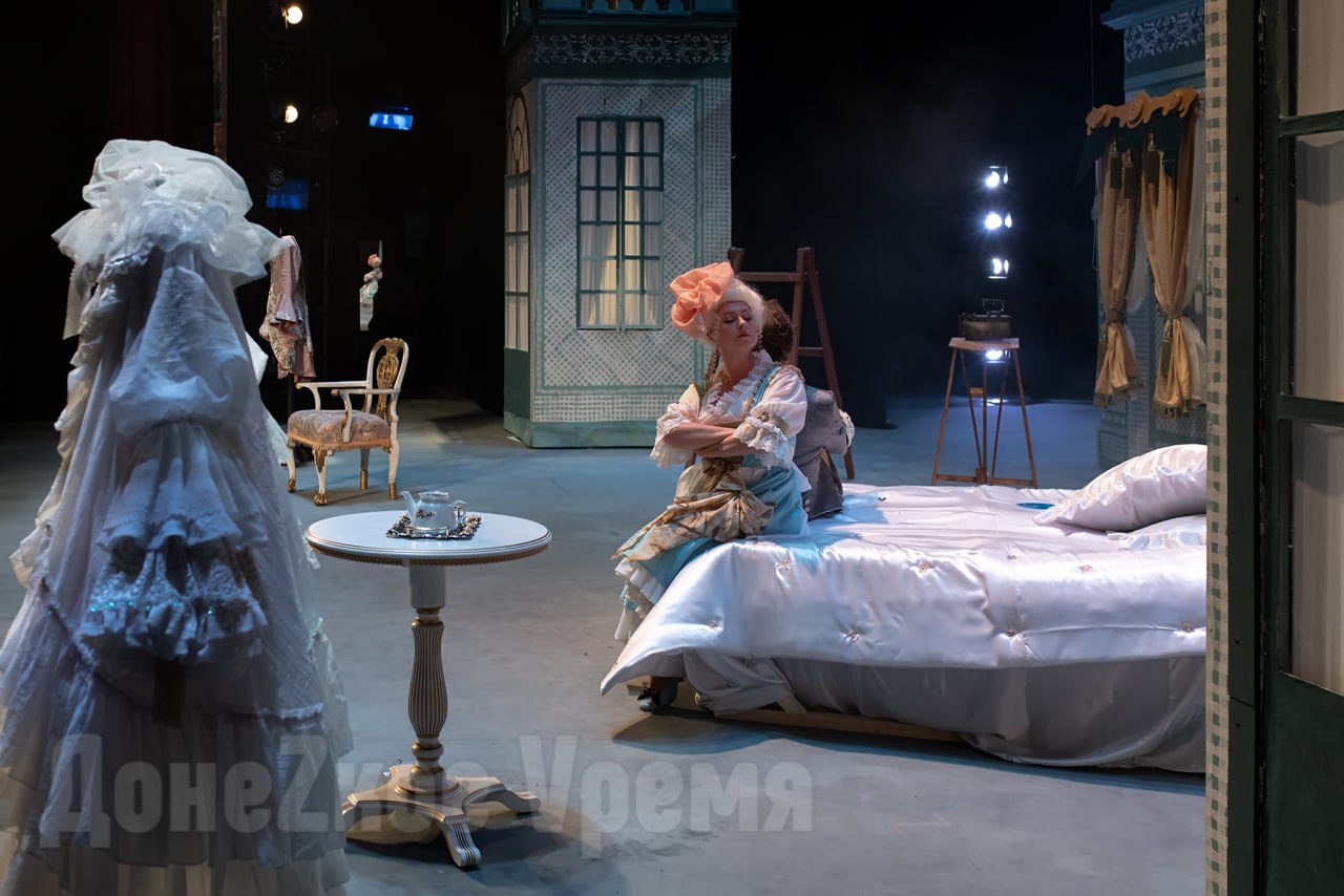 При реализации замысла звезды, сошлись на редкость удачно, и спектаклю есть чем удивить публику. Для этого он заходит сразу с нескольких козырей: филигранное исполнение артистами легких и воздушных, но очень непростых с точки зрения техники вокальных партий в сочетании с мастерски выстроенной драматургией образа и феерический юмор фантасмагорической комедии положений. Действие разворачивается на фоне ярких и сложных декораций, работа над которыми велась дистанционно с питерским художником-постановщиком Ириной Долговой. Все в костюмах эпохи, но с легким флером современности, сшитых по эскизам Ирины Долговой домом моды донецких дизайнеров братьев Анацких. Костюмы, надев которые женщина моментально ощущает себя благородной графиней или лукавой субреткой, а мужчина – потомственным аристократом или его хитроумным слугой.
