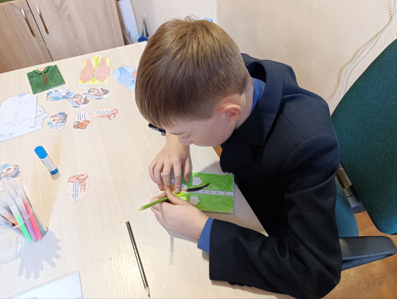 Ребята с большим усердием и удовольствием создавали своими руками поздравительные открытки для своих пап, украшая их яркими рисунками и аппликациями.