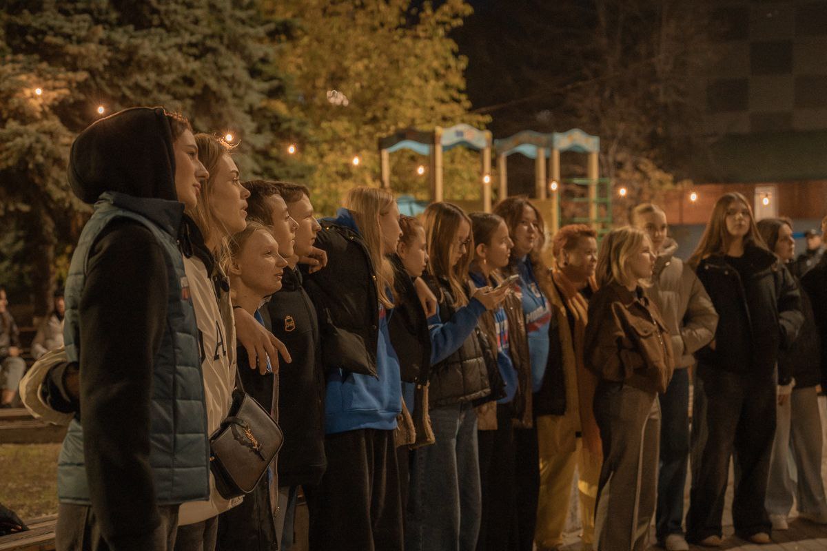 В городском Парке Победы собралось немало местных жителей за душевными песнями и тёплым чаем.