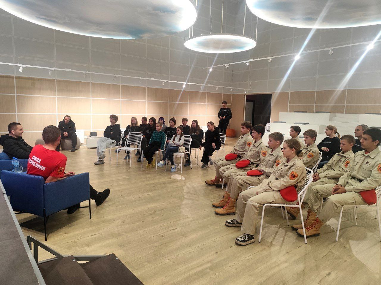 В День отца в Доме молодежи для активистов молодежных движений прошел Урок мужества.В качестве приглашенного гостя выступил участник специальной военной операции, военный медик 91 ОСП.