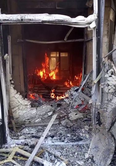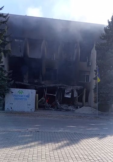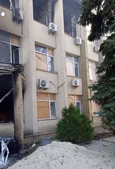На кадрах — свежий прилёт по ПВД ВСУ в здание бывшего исполкома Красного Лимана.