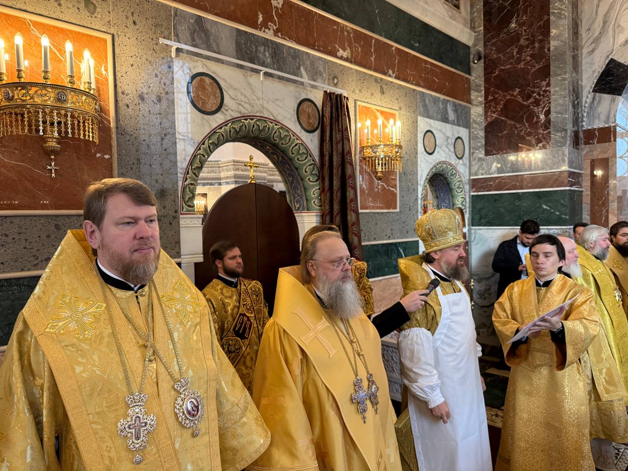 На богослужении Первосвятителю сослужили высшие иерархи Русской Православной Церкви, включая митрополита Донецкого и Мариупольского Владимира, а также присутствовали представители федеральной и региональной власти, в том числе глава Донецкой Народной Республики Д.В. Пушилин.
