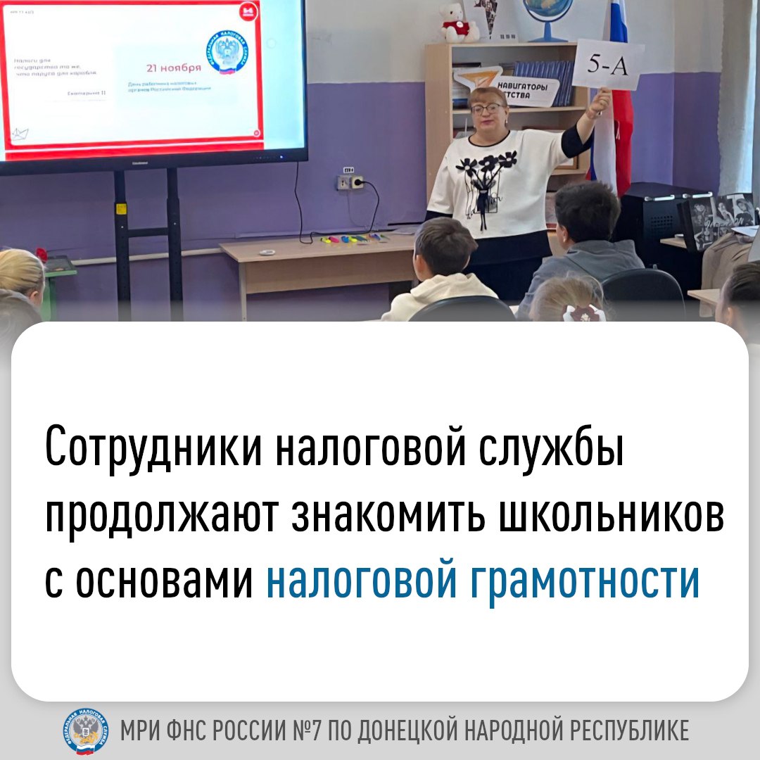 С началом учебного года стартовал очередной этап освоения налоговых знаний школьниками. Первые уроки в рамках Всероссийского просветительского проекта «юНГа» специалисты Межрайонной ИФНС России №7 по ДНР провели для учеников 5-6 классов школ города Енакиево.