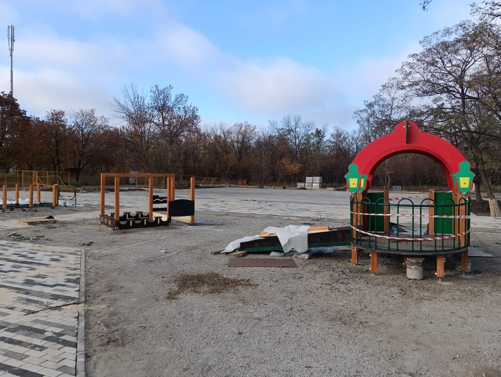 В городском округе Енакиево проходит реконструкция общественной территории «Парка культуры и отдыха имени Георгия Берегового», ведутся работы по установке МАФов на детской площадке и в центральной зоне парка.