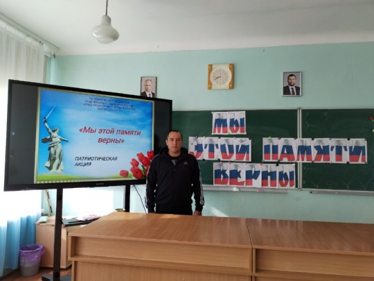 Учащиеся 8-Б класса школы №2 приняли участие в патриотической акции «Мы этой памяти верны», цель которой формирование и развитие у обучающихся патриотического сознания и активной гражданской позиции. Акция включает экскурсии по местам боевой славы, встречи с участниками СВО и трудовые десанты.