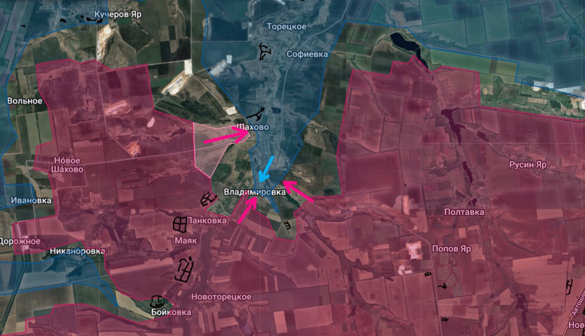 В южной части идут встречные бои с противникам на окраине Шахово и во Владимировке.
