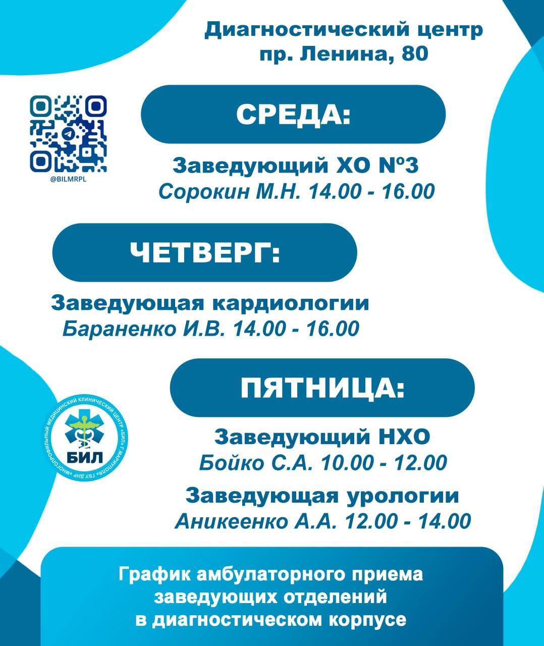 График амбулаторного приема заведующих отделений в диагностическом корпусе (ул. Ленина 80)