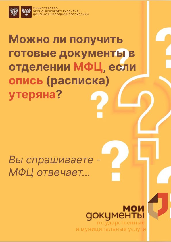 Один из часто задаваемых вопросов: Можно ли получить готовые документы, если опись (расписка) утеряна и с собой только паспорт РФ?
