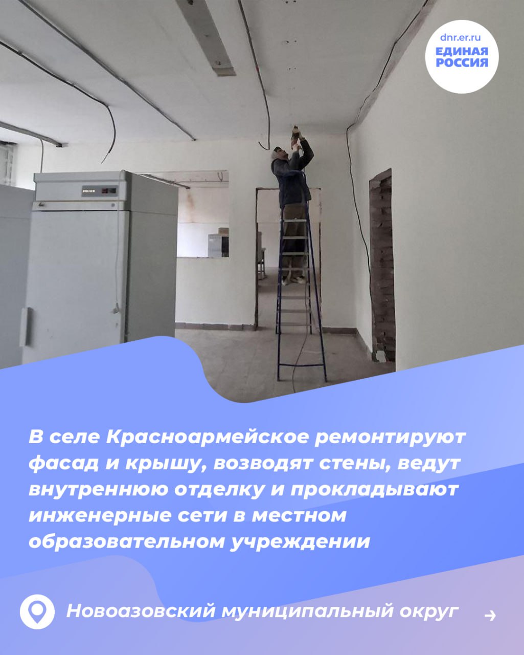 Все работы проходят по народной программе Единой России и проекту «Возрождаем Донбасс вместе!», инициированному Главой ДНР, секретарём Донецкого регионального отделения Единой России Денисом Пушилиным.