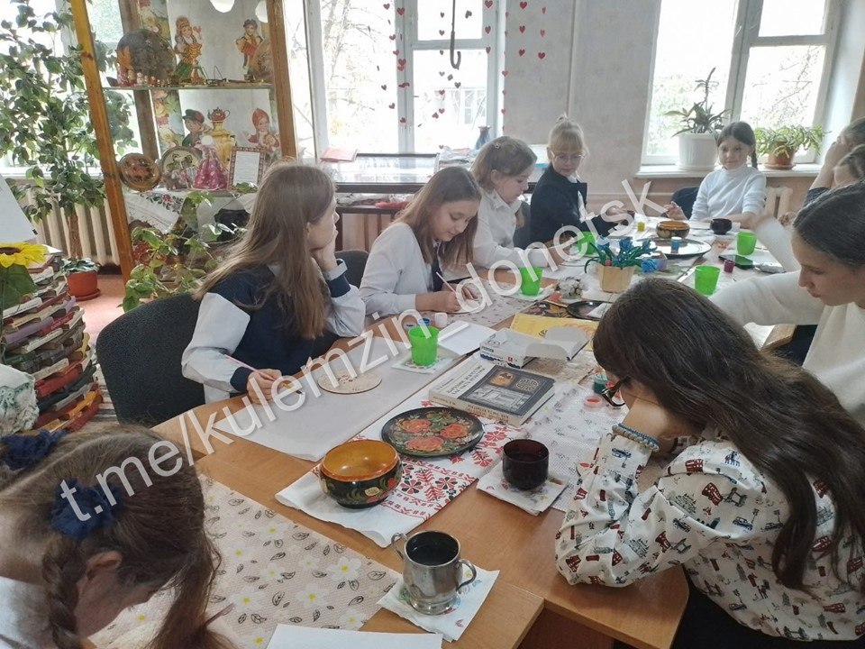 Библиотекарь провела увлекательное путешествие во времени, рассказывая об уникальных техниках и стилях, прославивших русское народное искусство: от золотой роскоши хохломы до ярких красок городецкой росписи и загадочной символики мезенской.