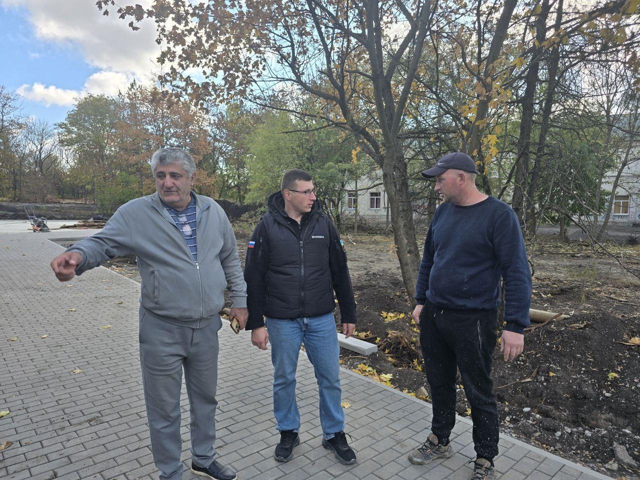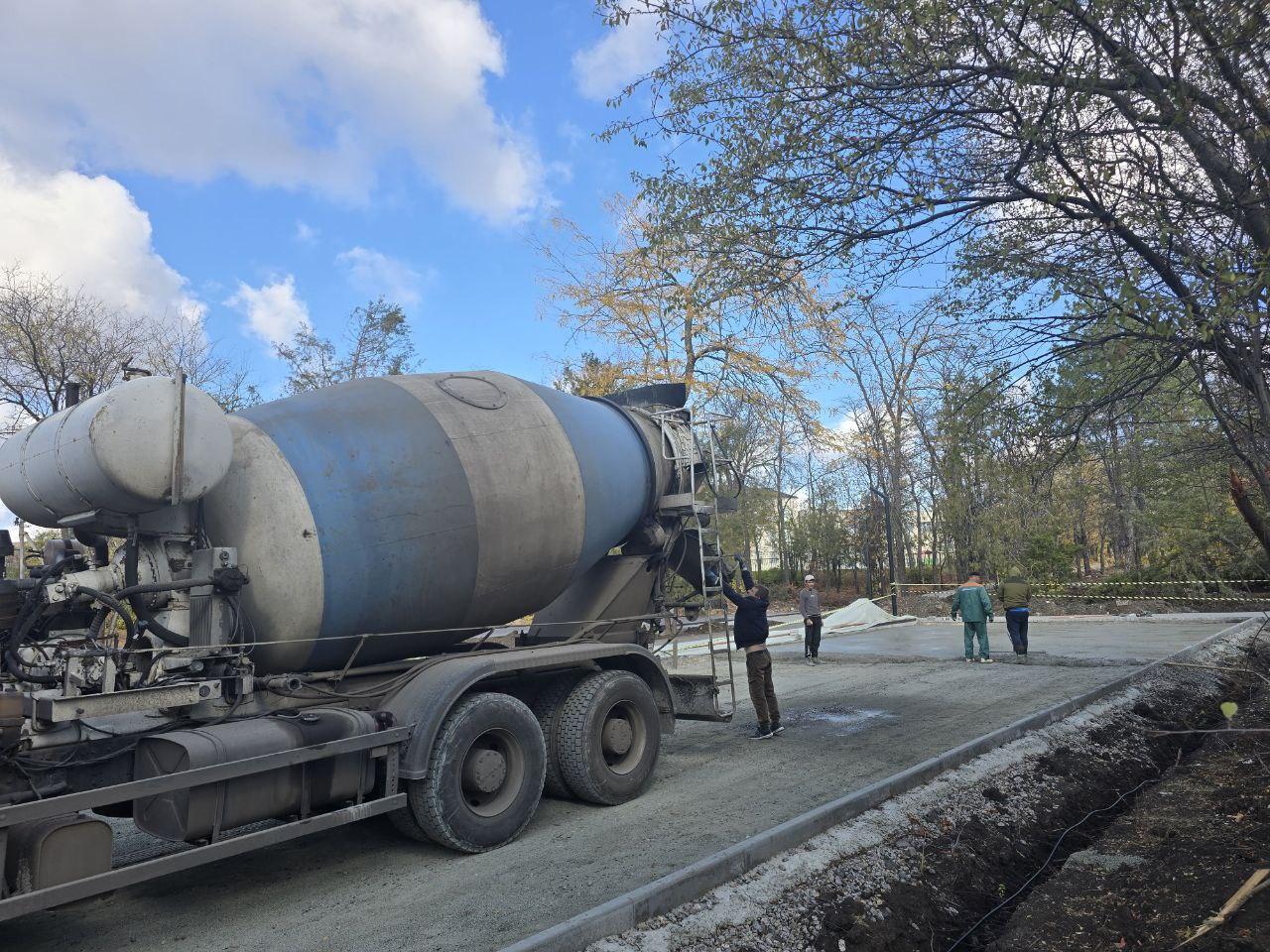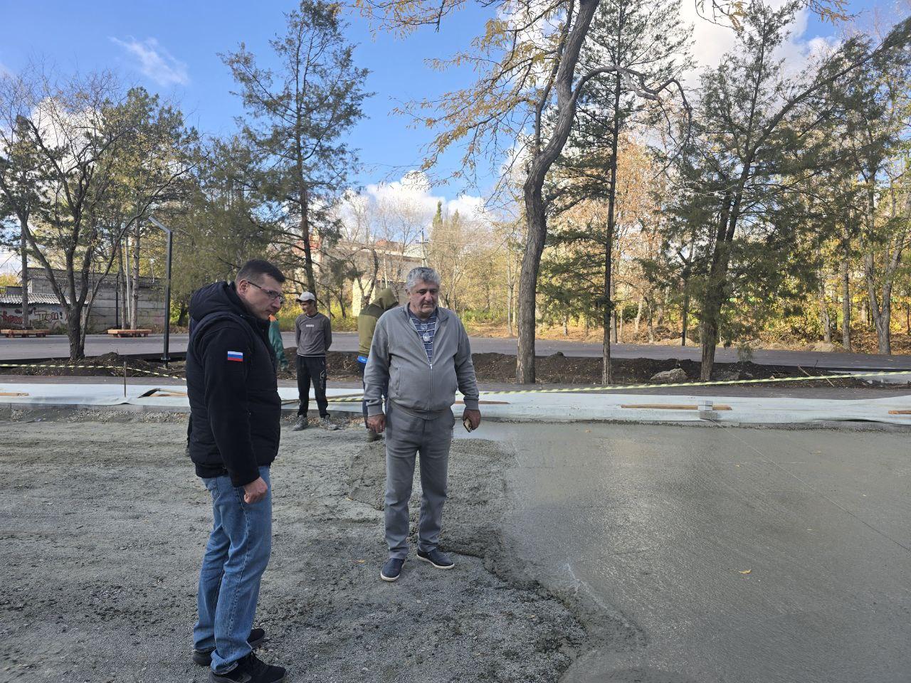 Особое внимание уделили контролю за процессом заливки бетонных оснований и началу монтажа оборудования для воркаут-площадки.