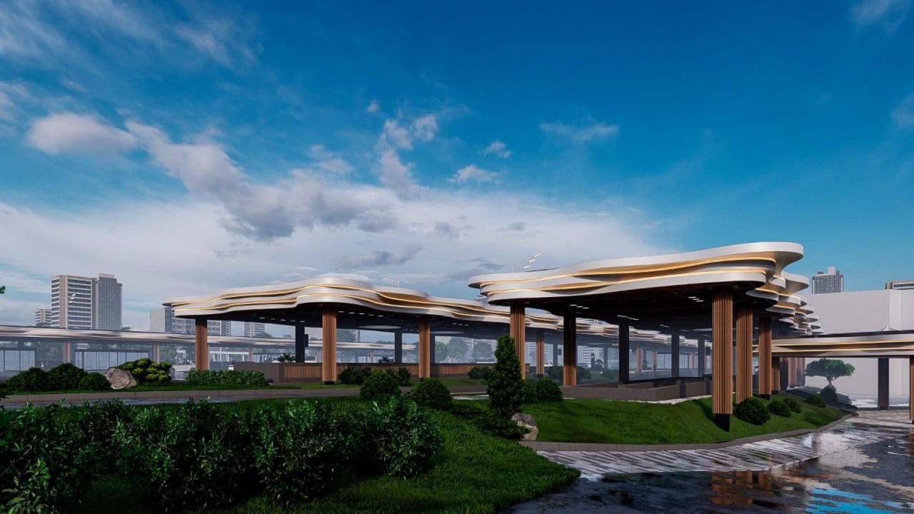 Сами навесы выполнены из высокопрочной стали, облицованы алюминием. На крышах — световые зенитные фонари (проемы по типу мансардных окон). Под навесами размесят инфракрасный обогрев, лавочки, табло с расписанием, а также теплые павильоны.