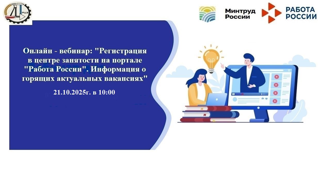 Онлайн-вебинар для соискателей по регистрации в центре занятости населения на портале"Работа России" Регистрация на ЕЦП «Работа в России», создание резюме, подача заявления, а также информация о горящих актуальных вакансиях.