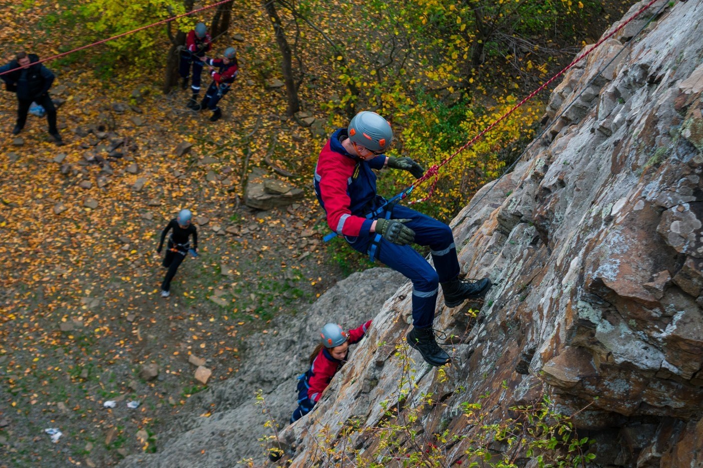 Местом для отработки навыков стал скальный рельеф Зуевского ландшафтного парка. В ходе занятия участники отработали технику движения по сложному рельефу, организацию страховки и применение специального альпинистского снаряжения.