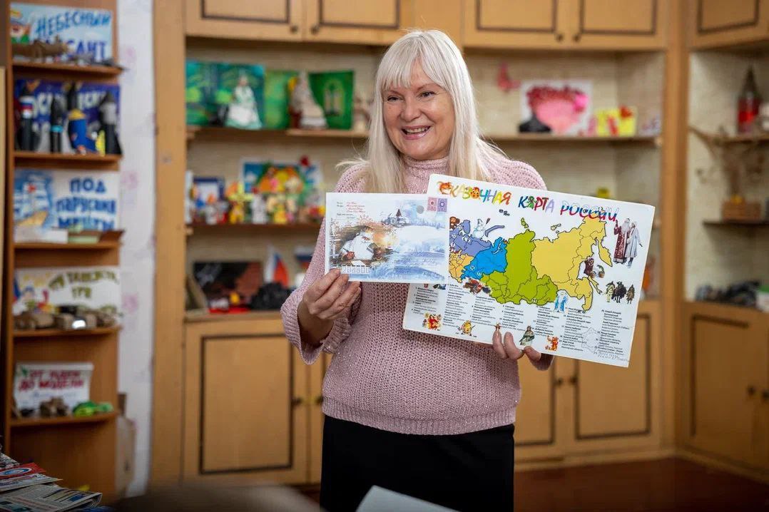 Елена Васильевна поделилась замечательными воспоминаниями о встрече с Дедушкой Морозом и подарила ему сказочную карту России — это добавило особую волшебную атмосферу мероприятию.