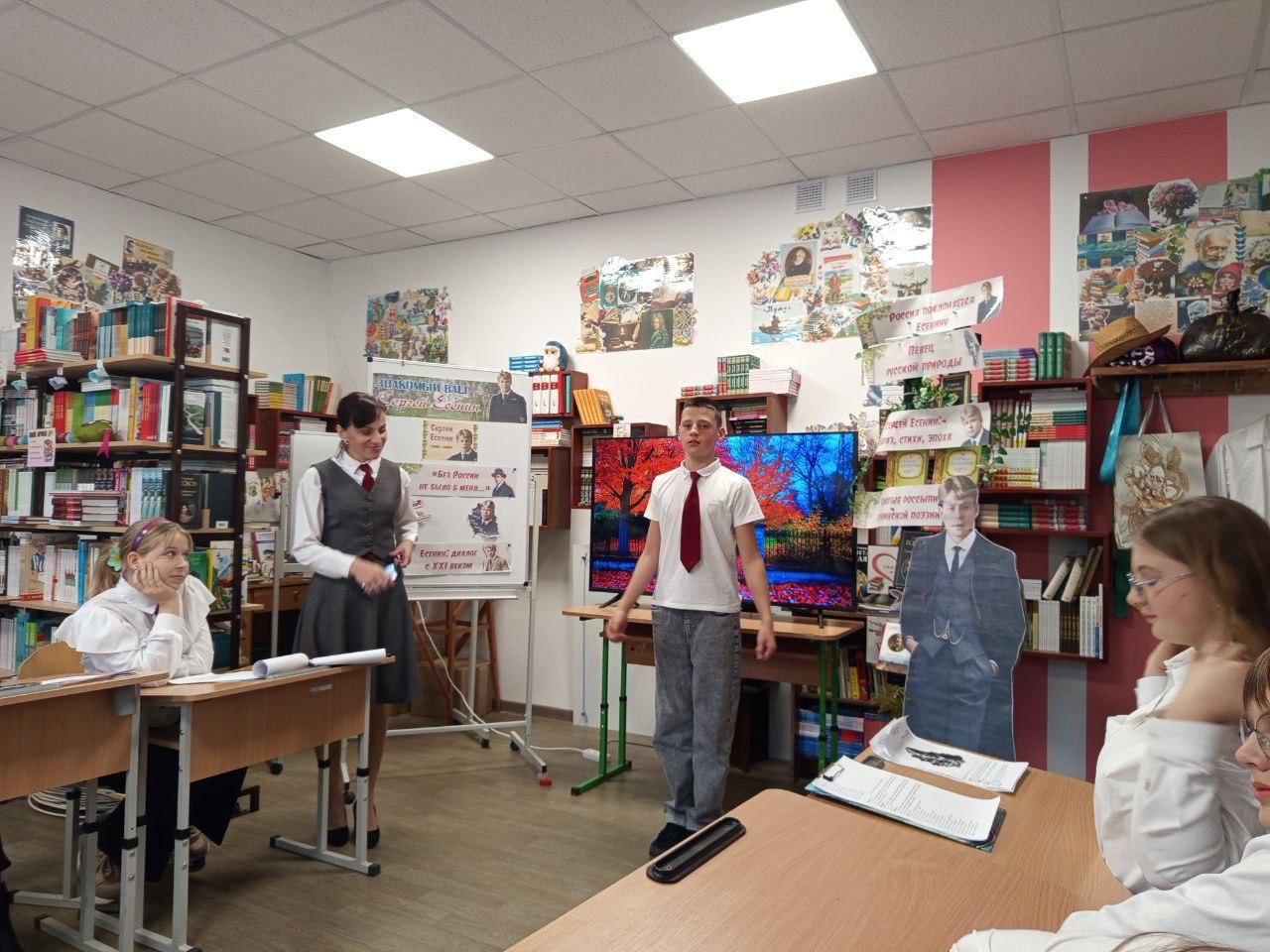 Учитель русского языка и литературы Октябрьской школы Анастасия Кривицкаяпровела для учащихся 8-х классов мероприятие, посвященное 130-летию со дня рождения русского поэта Сергея Есенина, по методическим наработкам Новоуренгойской школы № 11.