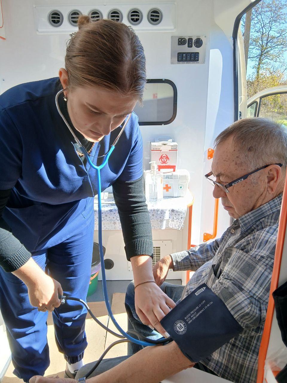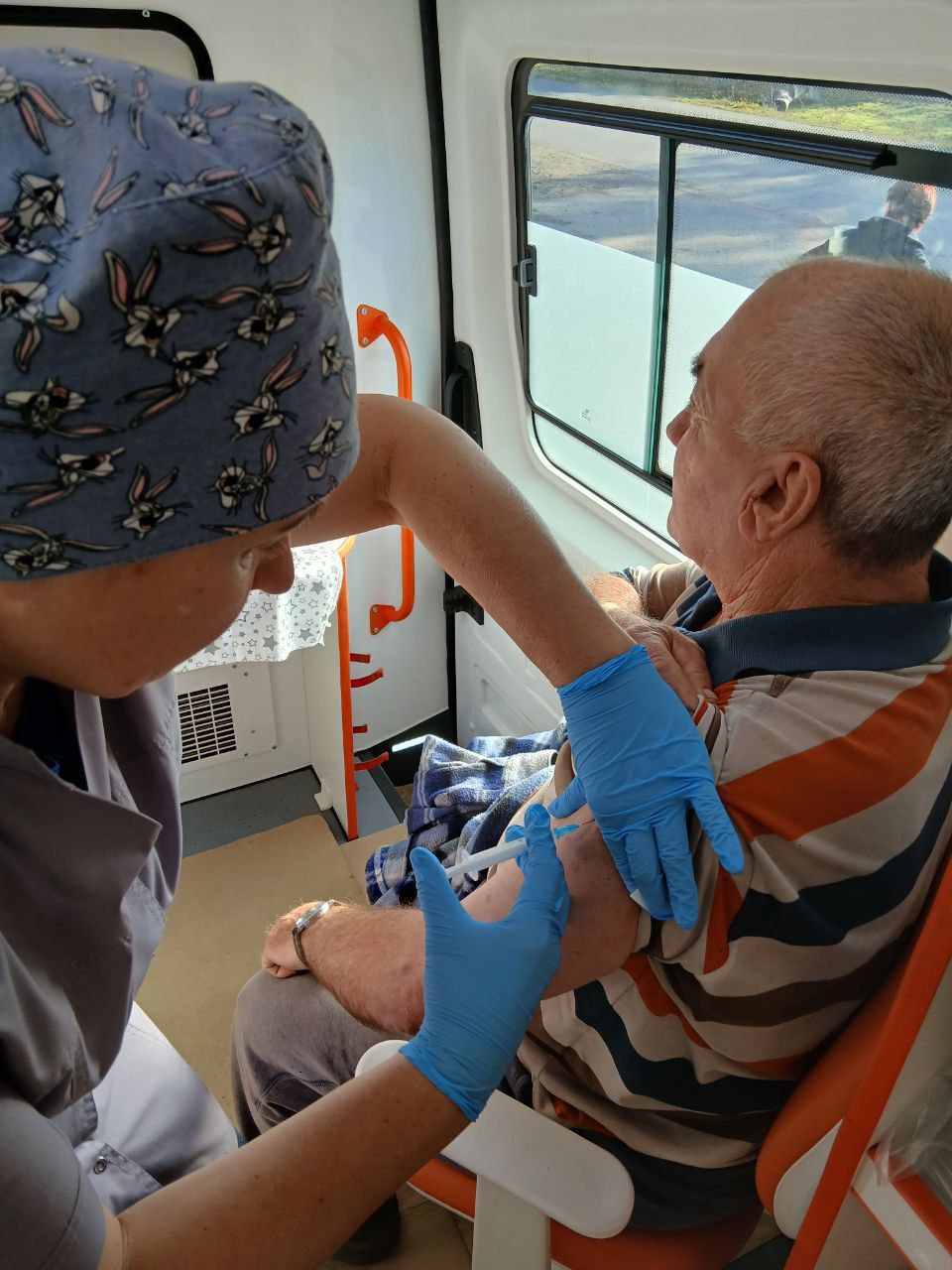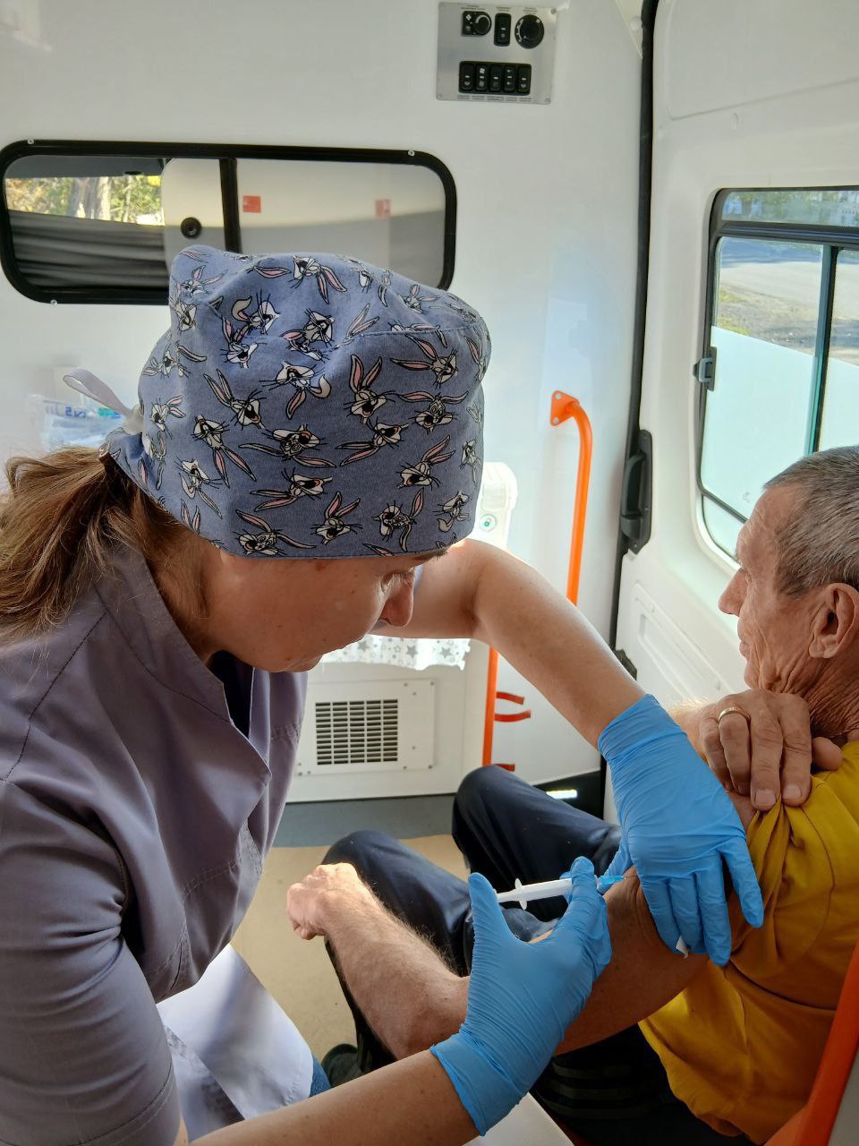 С целью проведения выездной вакцинации населения и маломобильных граждан против гриппа сотрудники поликлиники Тельмановской ЦРБ прибыли для оказания медицинских услуг жителям в населенные пункты: