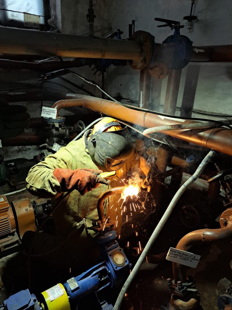 Аварийно-восстановительная бригада региона-шефа ремонтирует узлы теплоснабжения и меняет аварийные участки труб.