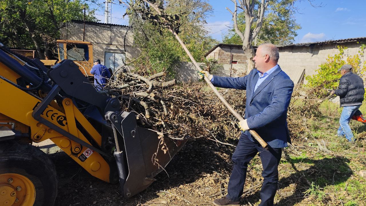 Депутат Тельмановского муниципального совета Владимир Ермак принял участие в уборке территории посёлка Тельманово, которую организовало Муниципальное казённое учреждение «Жилищно-коммунальное хозяйство и благоустройство» Тельмановского муниципального округа.