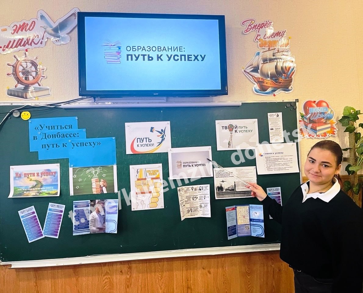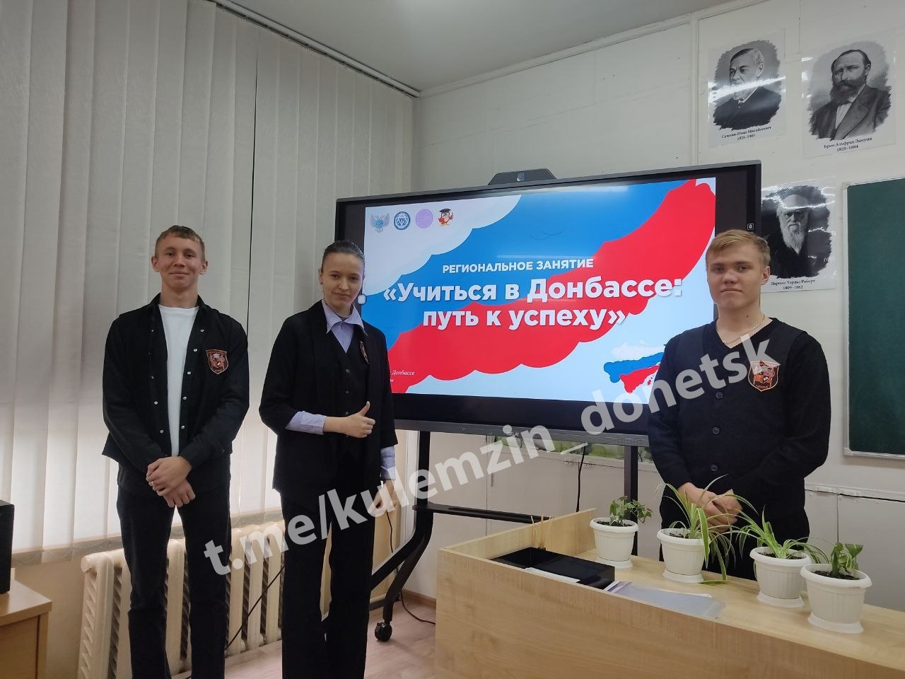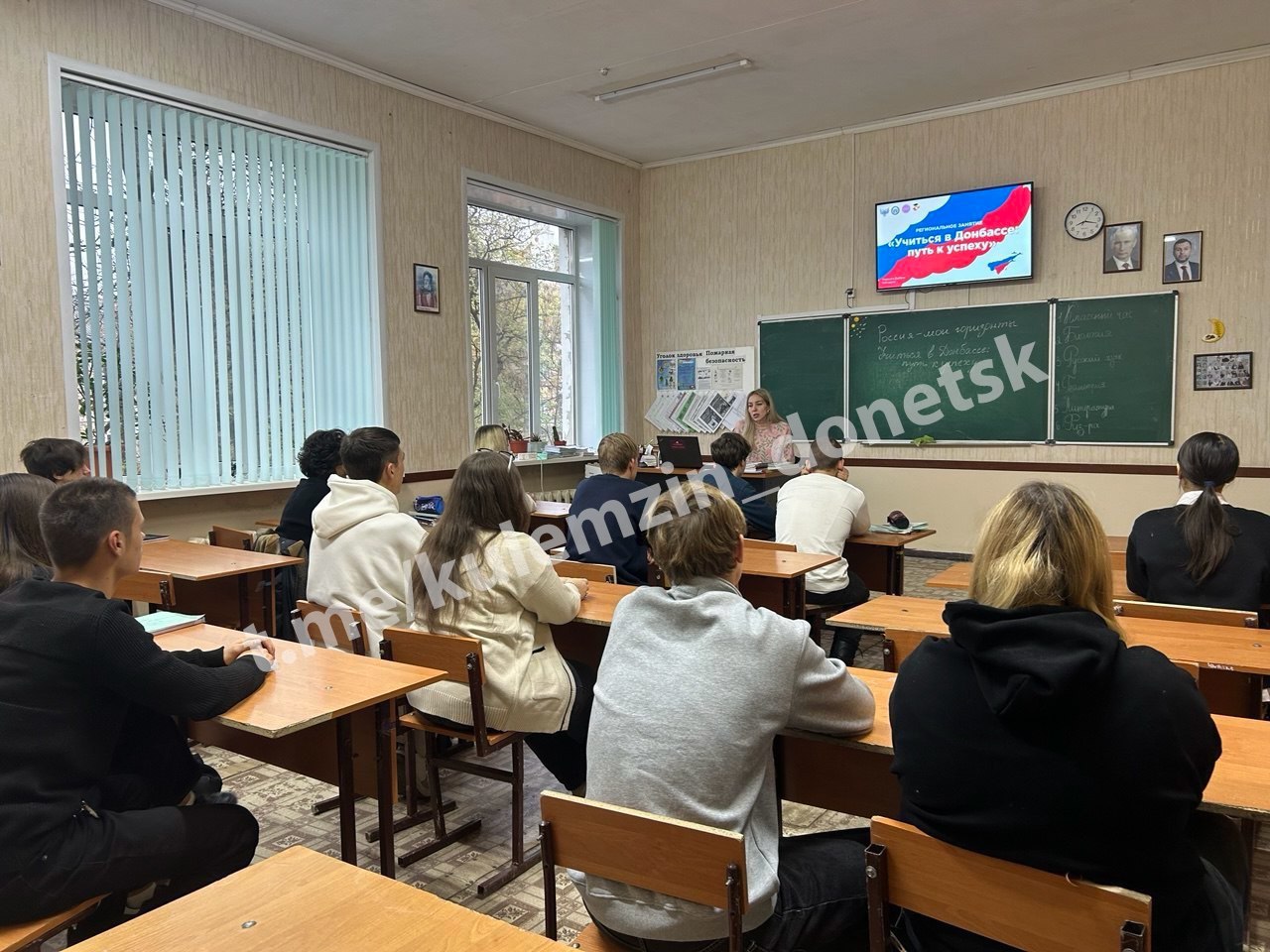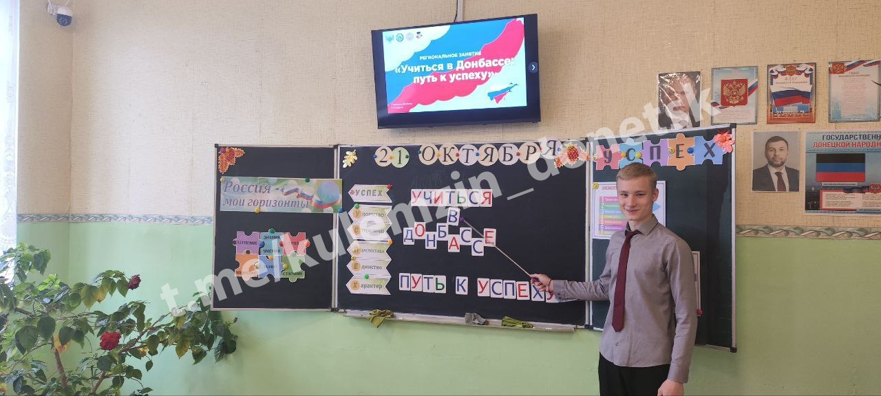 Сегодня в рамках Республиканской акции «Учиться в Донбассе» во всех общеобразовательных организациях г. о. Донецк состоялись занятия в рамках курса «Россия – мои горизонты» («Донбасс мои горизонты») по теме «Учиться в Донбассе: путь к успеху».