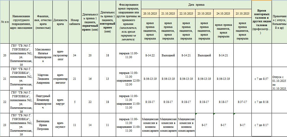 Иван Приходько: График работы специалистов ГБУ ДНР «Городская больница № 1 г. Горловки» и ГБУ ДНР «Городская больница № 3 г. Горловки»