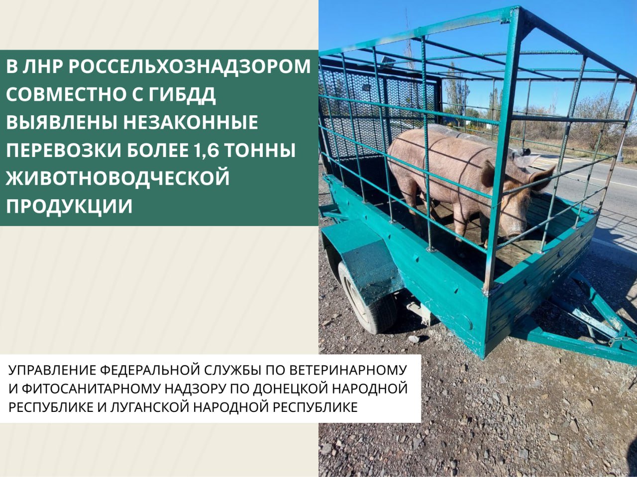 В ЛНР Россельхознадзором совместно с ГИБДД выявлены незаконные перевозки более 1,6 тонны животноводческой продукции