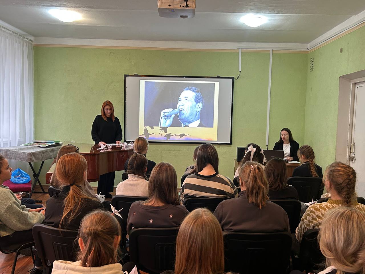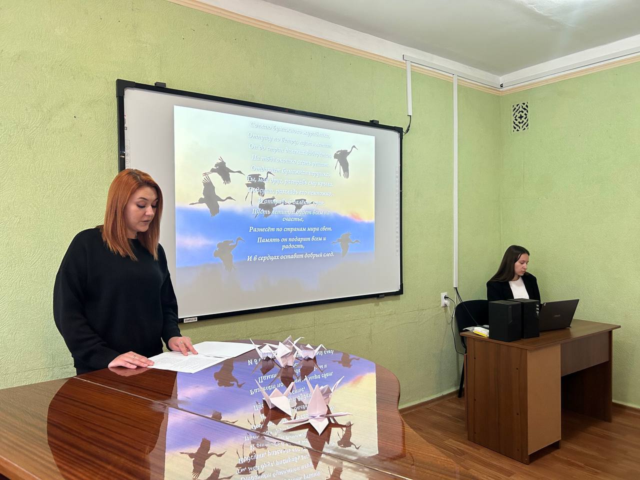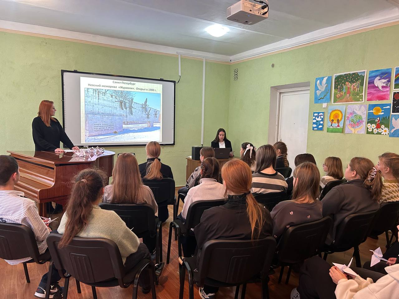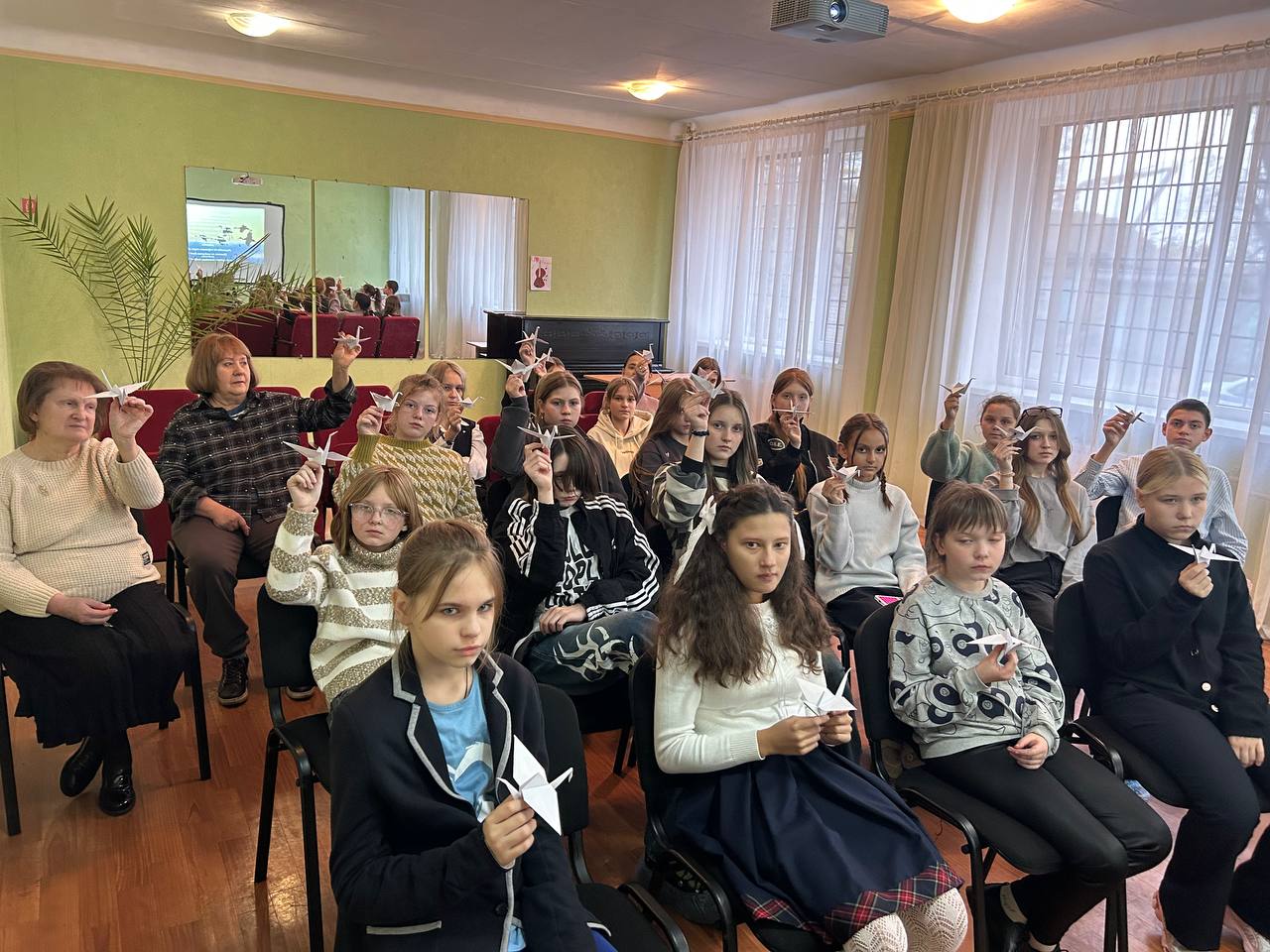 Содержательная презентация и звучание тематических песен ярко дополняли восприятие исторических событий. По традиции ребята принесли с собой на мероприятие белых журавликов — яркий символ этой акции.