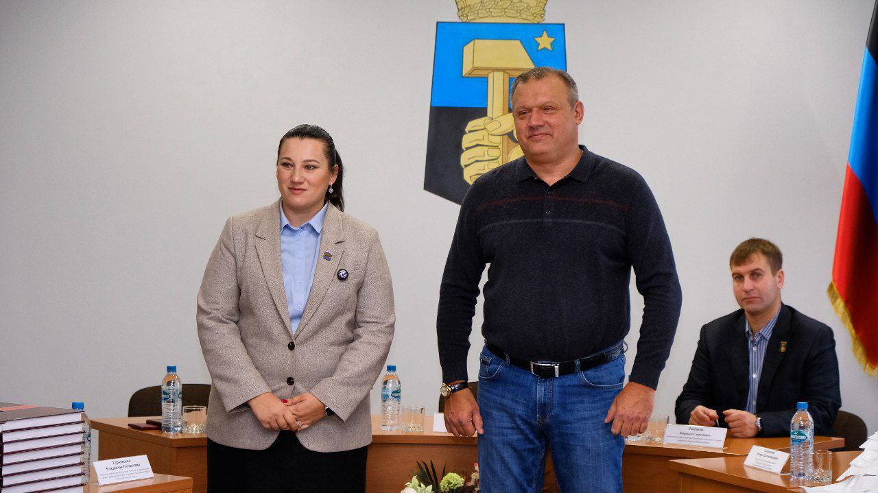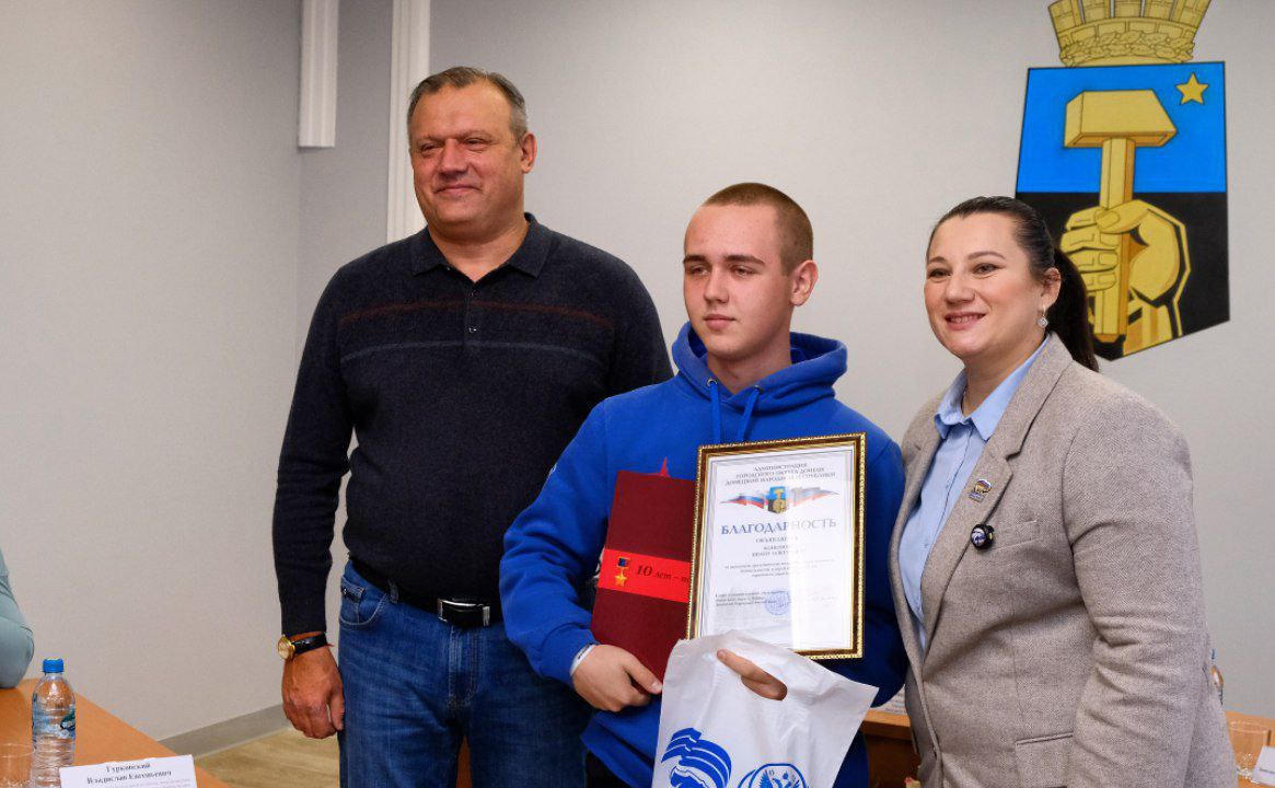 Председатель #Комитет_по_ЖКХ Анна Кондрыкинская вместе с Главой муниципального образования городского округа Донецк Алексеем Кулемзиным наградили волонтеров, оказывающих помощь в голосовании за общественные пространства в рамках федерального проекта «Формирование комфортной городской среды».