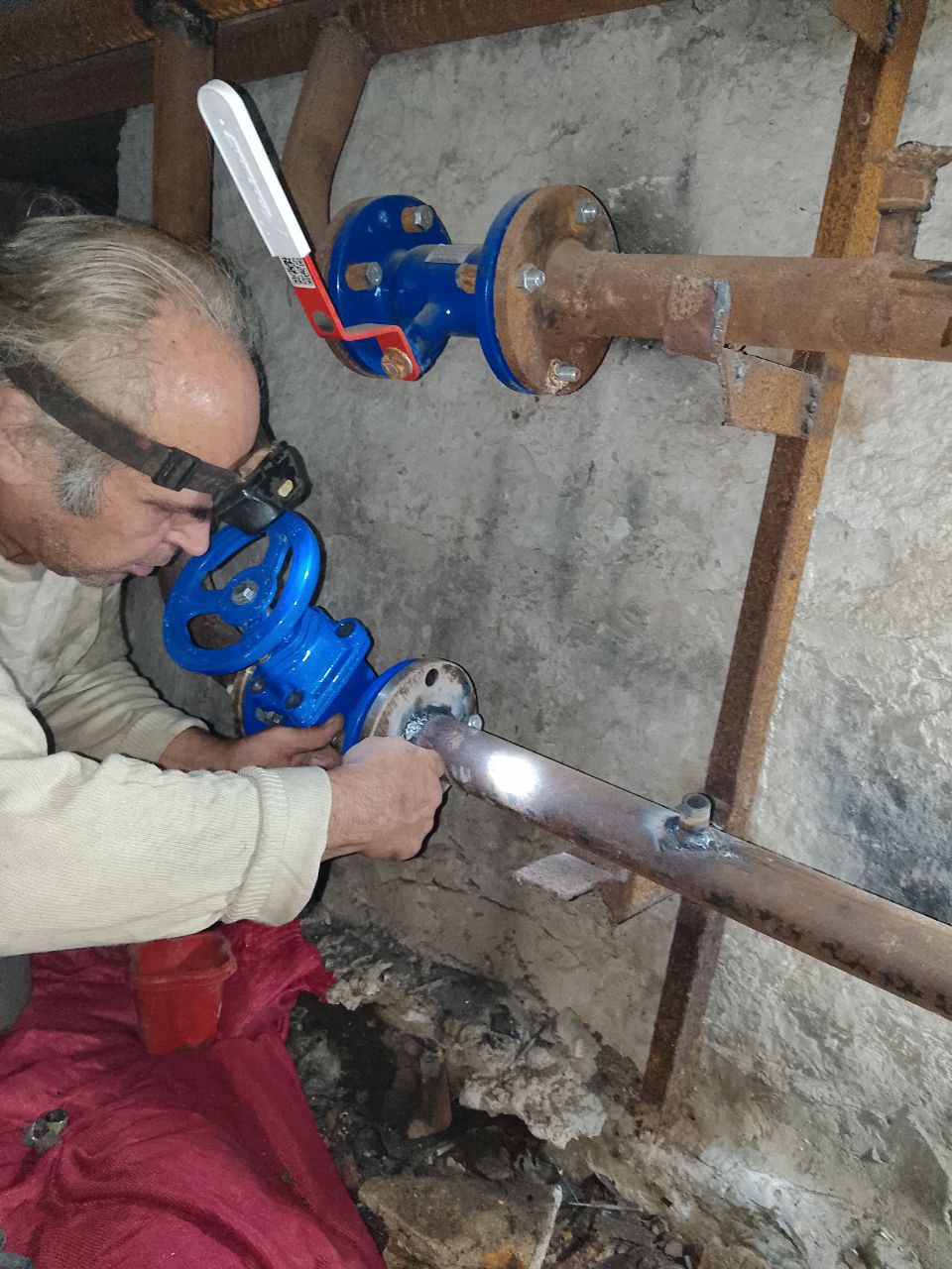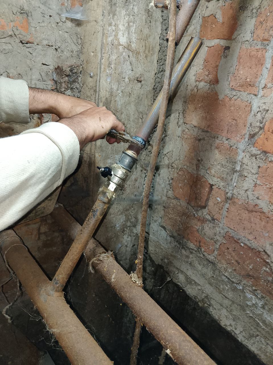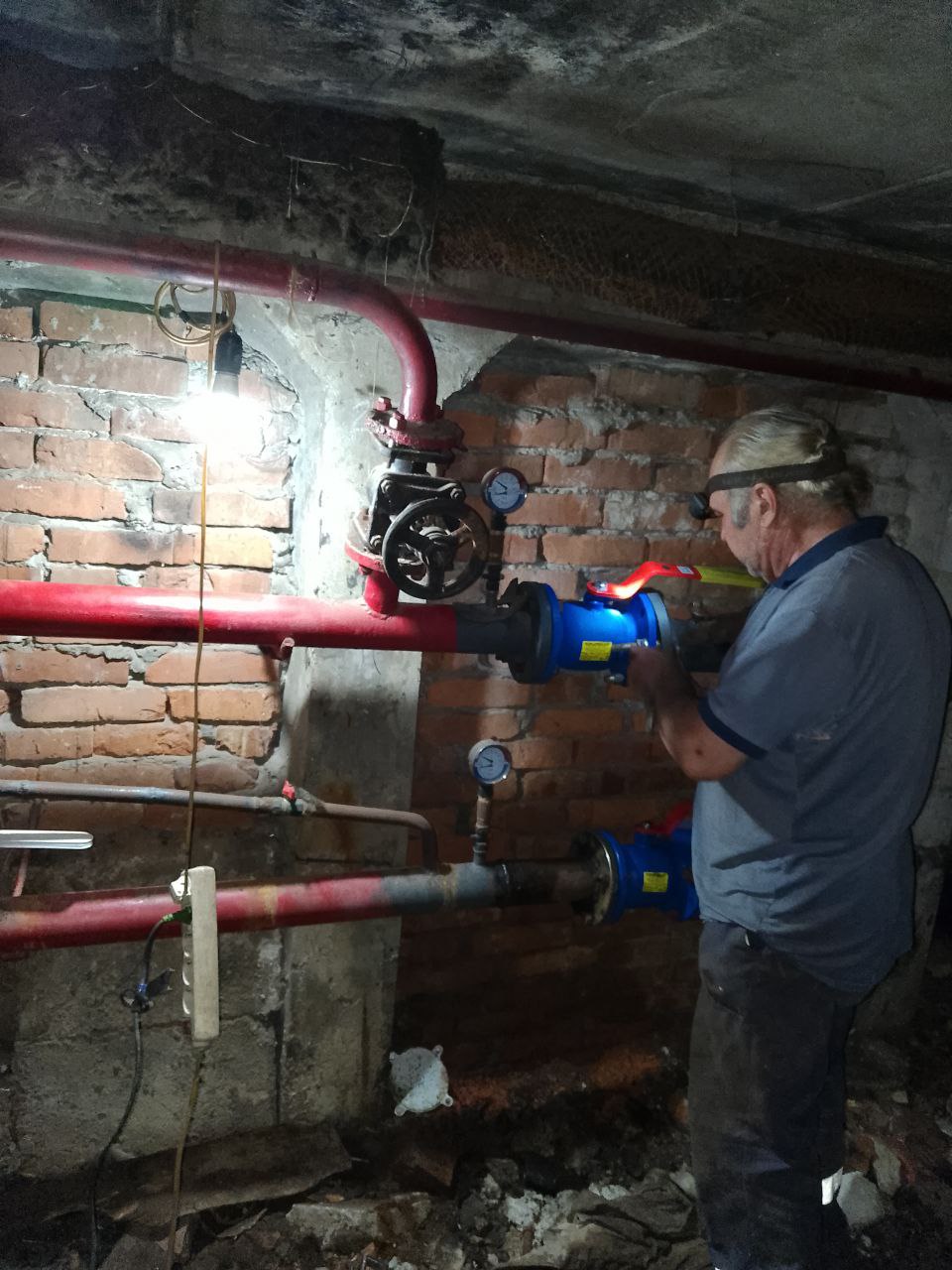 В г.Светлодарск специалисты Участка № 6 Енакиевского филиала единого регионального фонда по управлению МКД на территории ДНР отрабатывают пуско-наладочные и ремонтные работы по обращениям граждан на сетях теплоснабжения.