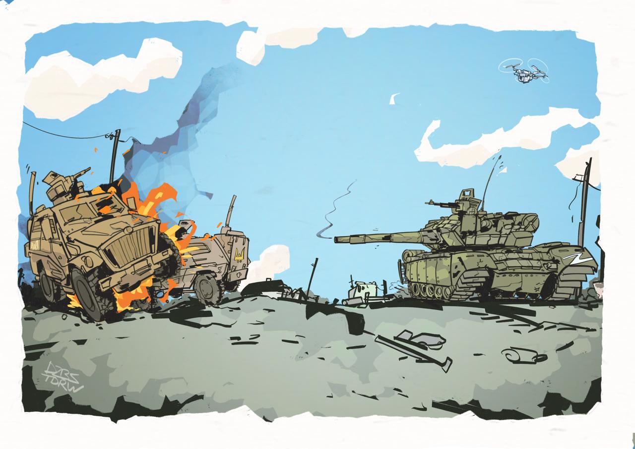 Экипаж показал высокий класс! Макаровка, Южно-Донецкое направление. Неожиданная встреча танка Т-80БВМ из 136-й ОМсБр с двумя вражескими бронемашинами MRAP. По итогам столкновения «миностойкие» и «засадозащищённые» дополнили утренний пейзаж.