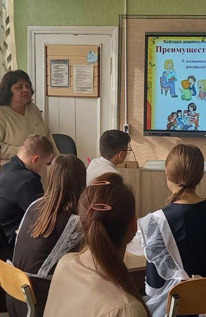20 октября в шахтерской школе № 22 прошло профориентационное мероприятие в рамках проекта «Билет в будущее» национального проекта «Молодежь и дети» «Есть такая профессия – учитель», которое провели преподаватели кафедры дошкольного и начального педагогического образования института педагогики Донецкого государственного университета Ирина Матузова и Инна Карпушина с советником Главы ДНР, доцентом кафедры Мариной Борисюк. Цель интерактива – познакомить учащихся психолого-педагогических классов с профессией педагога, её особенностями и преимуществами, а также мотивировать к выбору данной профессии.