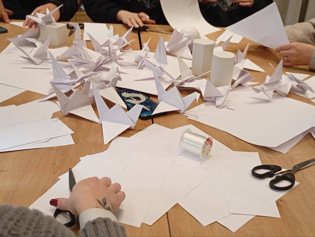 В День белых журавлей в Доме молодежи прошёл мастер-класс по изготовлению бумажных белых журавлей. Активная молодежь Волновахского МО приняла участие в творческом процессе, символизирующем мир, память и надежду.
