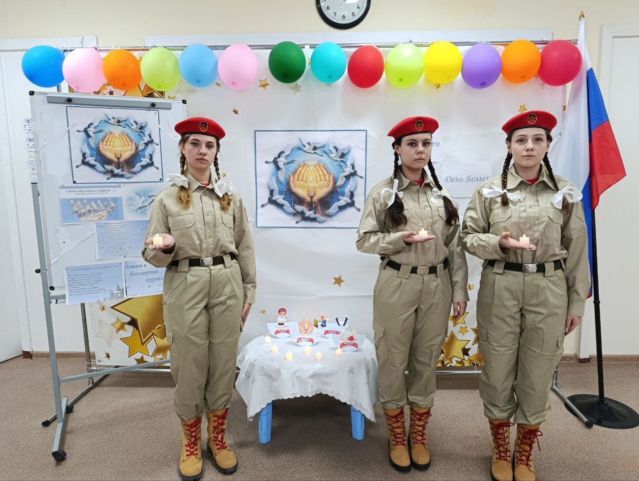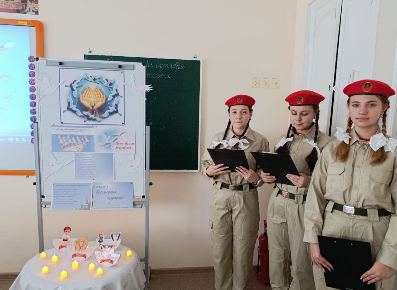 Юнармейцы ГБОУ "Ближненская школа" приняли участие в Литературно-патриотическом уроке "Летят над миром журавли", чтобы почтить память павших героев и ещё раз напомнить о ценности мира.