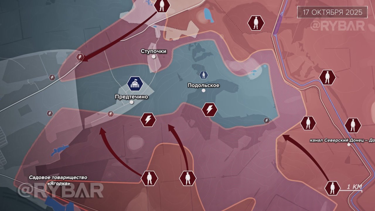 В конце сентября ВС РФ постепенно продвигались к Предтечино и Подольскому. Их освобождение позволило бы срезать вклинение противника западнее канала Северский Донец — Донбасс.
