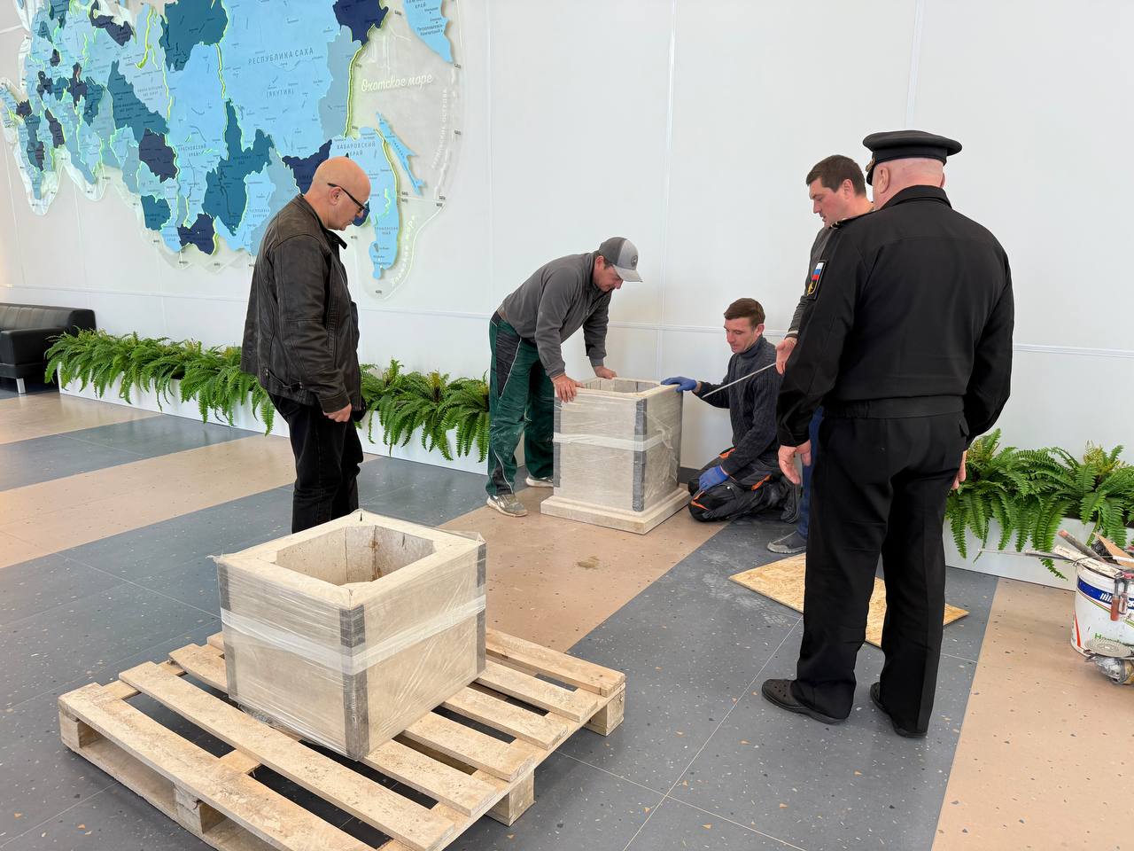 Строители из СанктПетербурга доставили постамент под бюст адмирала Павла Нахимова в Мариупольский филиал Нахимовского военноморского училища