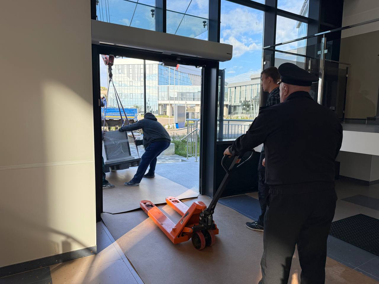 Строители из СанктПетербурга доставили постамент под бюст адмирала Павла Нахимова в Мариупольский филиал Нахимовского военноморского училища.
