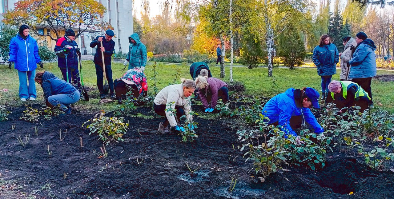 Сегодня в акции Чистый четверг активное участие приняли руководитель Управы Петровского внутригородского района Администрации городского округа Донецк, сотрудники Управы Петровского района, «Зеленого строительства» и актив первичных отделений Единой России. На площади Петровского участники акции высадили розы, которые являются визитной карточкой нашего города, а также символом мужества и стойкости дончан.