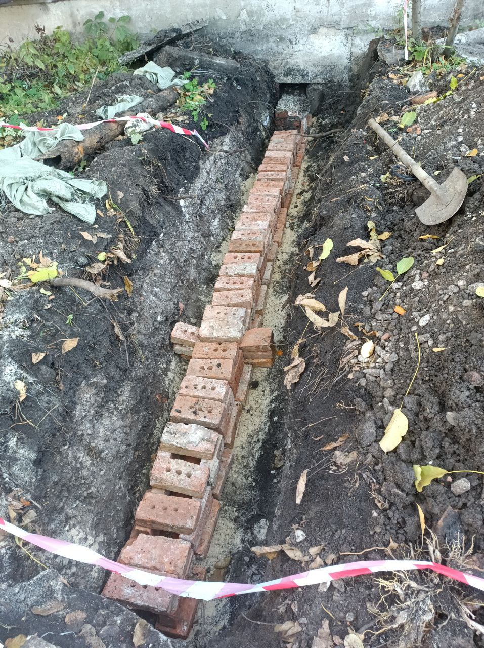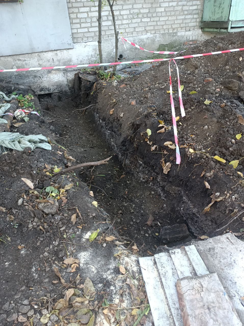 ул. Калинина,135 - замена канализационной трубы от колодца к подвалу;