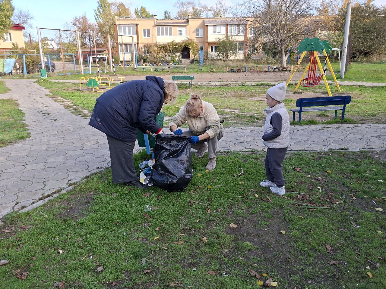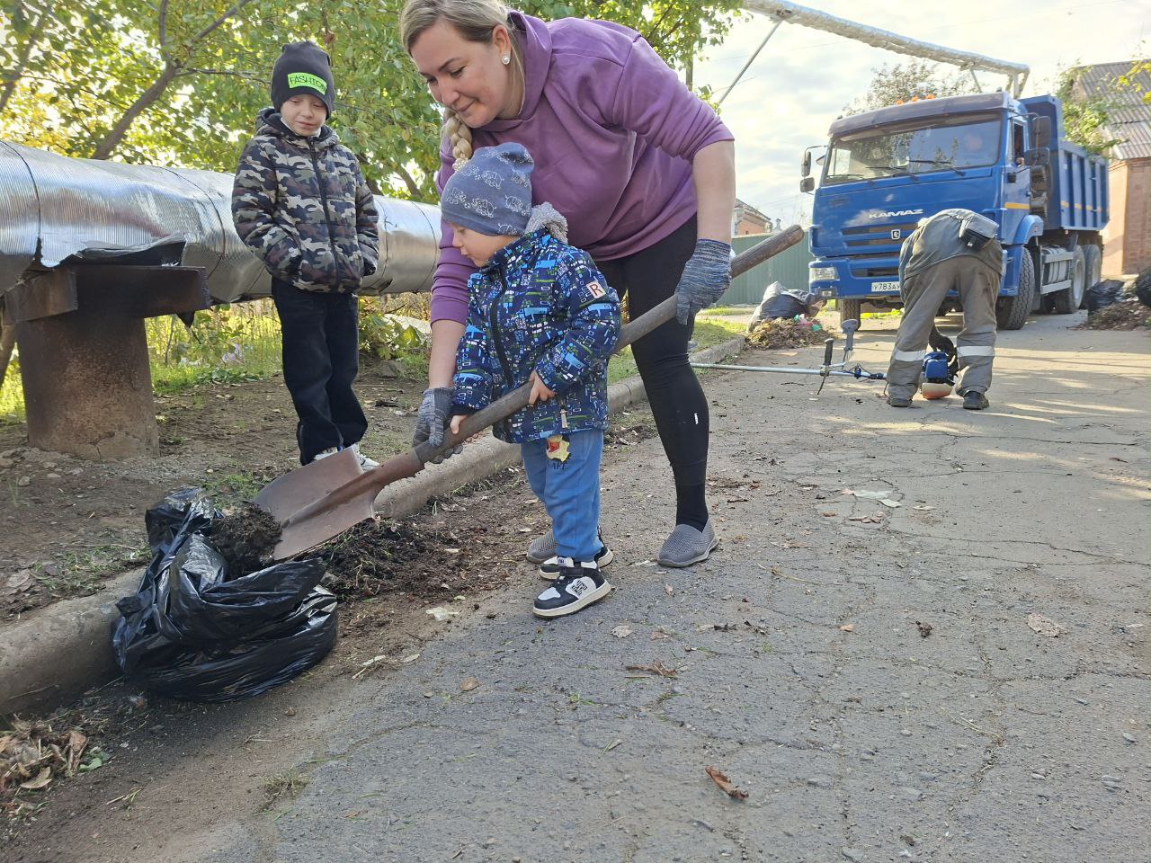 В уборке территории поучаствовали даже самые юные жители пос. Каменск.
