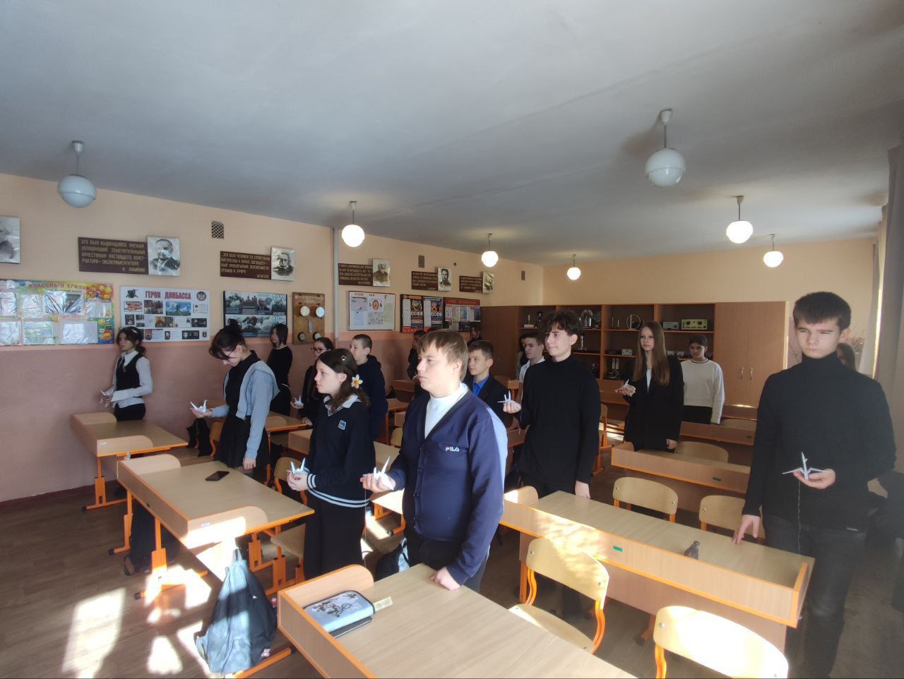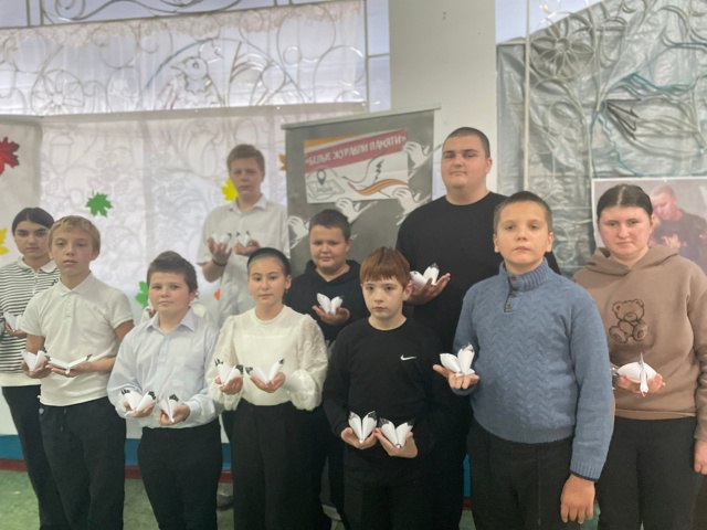 Ученики Новоазовской школы № 2 также отметили День белых журавлей. Дети узнали об истории этого дня и сделали бумажных журавликов в знак уважения к героям. Эта традиция напоминает о важности мира на Земле.