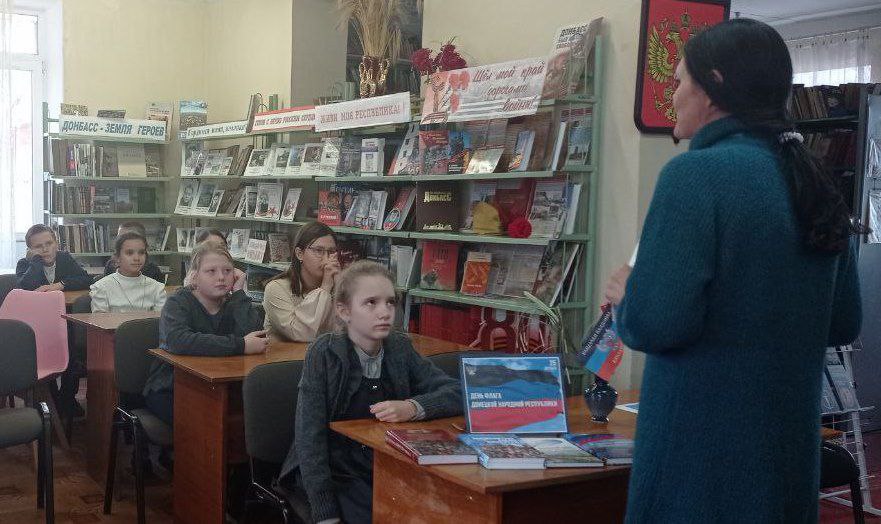 В Новоазовской библиотеке для детей организовали час «Флаг Республики реет над землёй!». Ученики школы № 1 узнали историю флага, его символы, участвовали в конкурсах и викторинах. Библиотекари подчеркнули, что уважение к государственным символам — это проявление гражданской позиции и любви к Родине.
