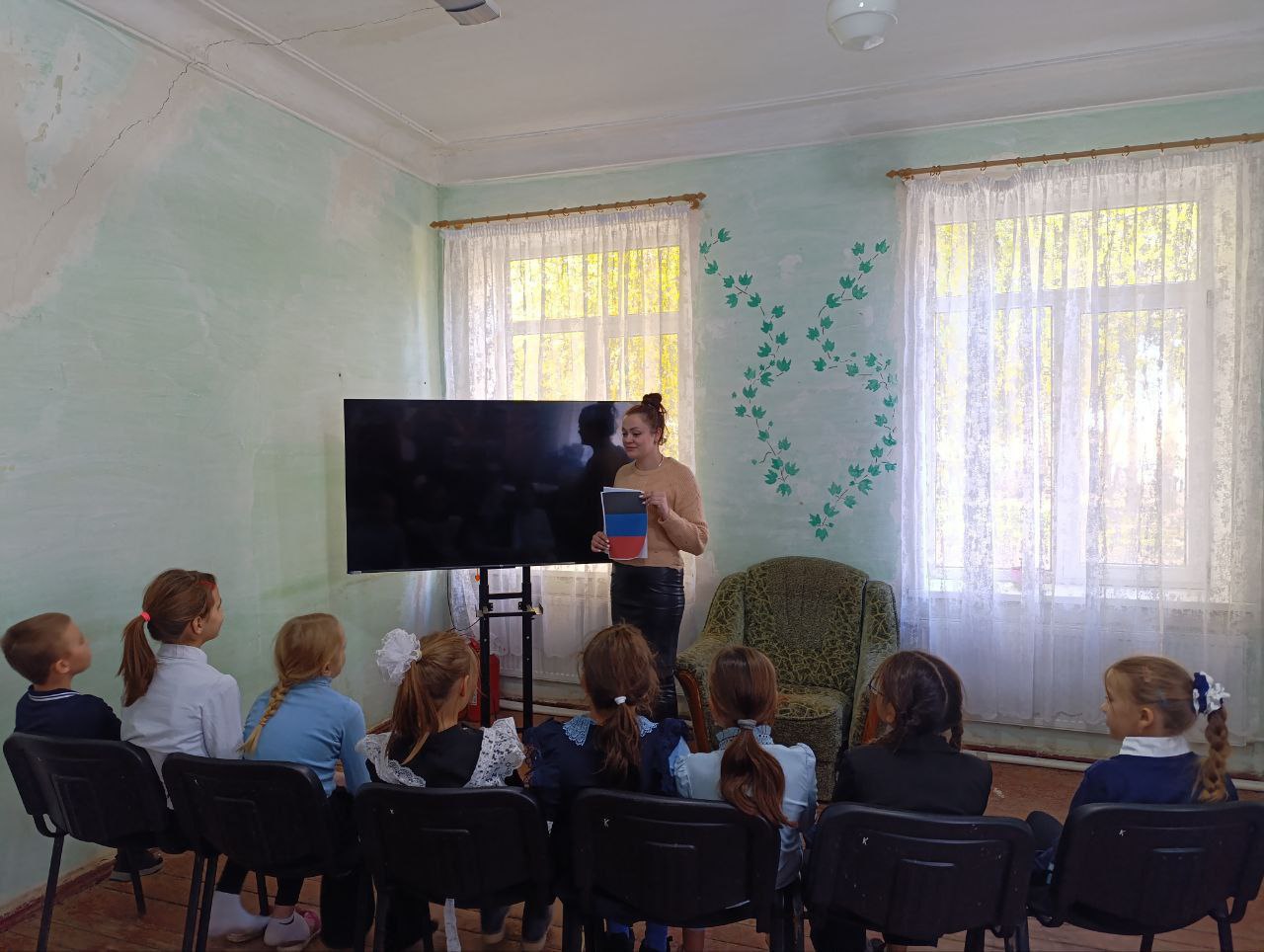 В доме культуры села Розы Люксембург организовали познавательную программу для детей о символике и истории флага ДНР. Ребята узнали о значении цветов флага, событиях и идеях, которые он символизирует.
