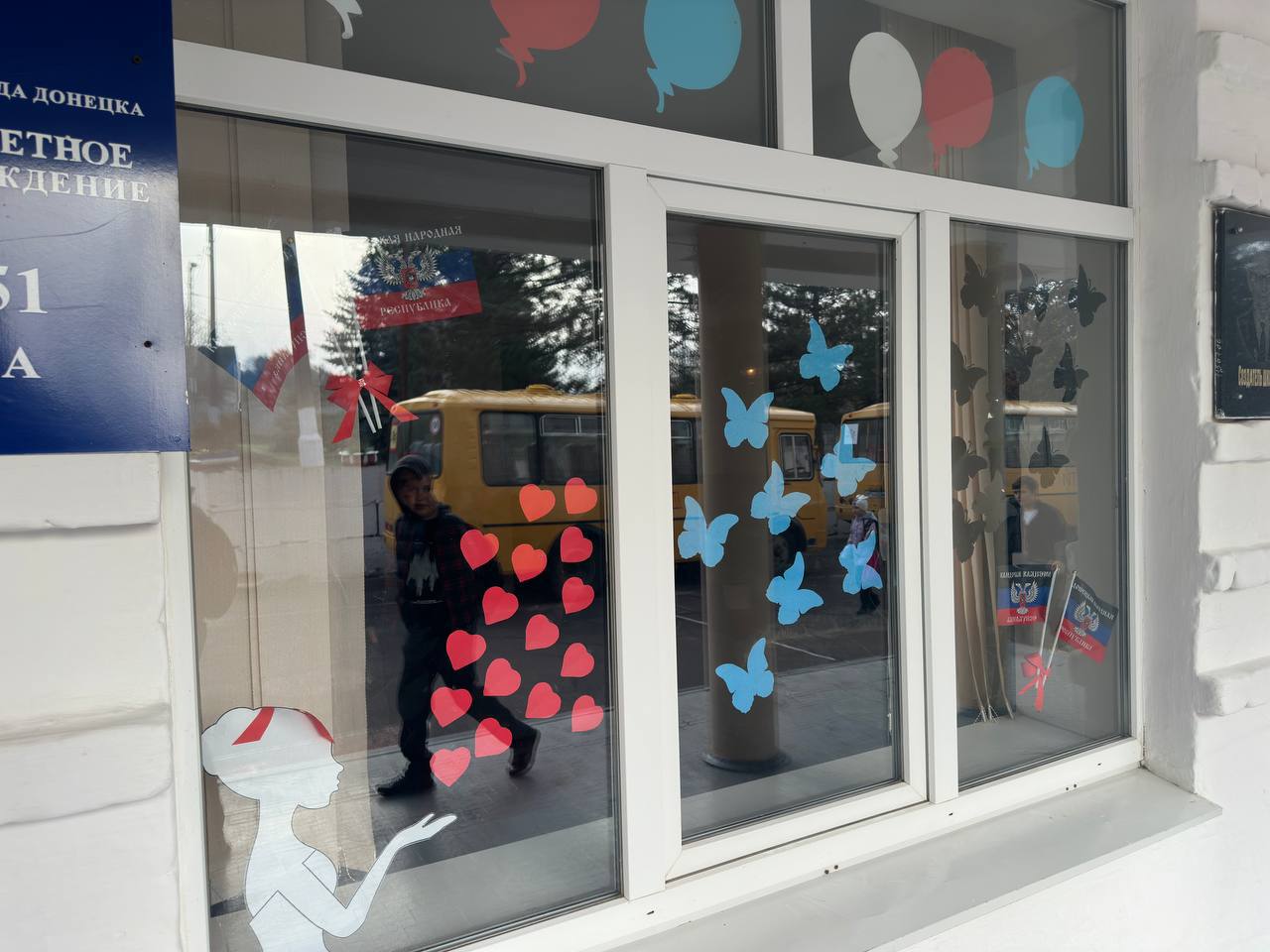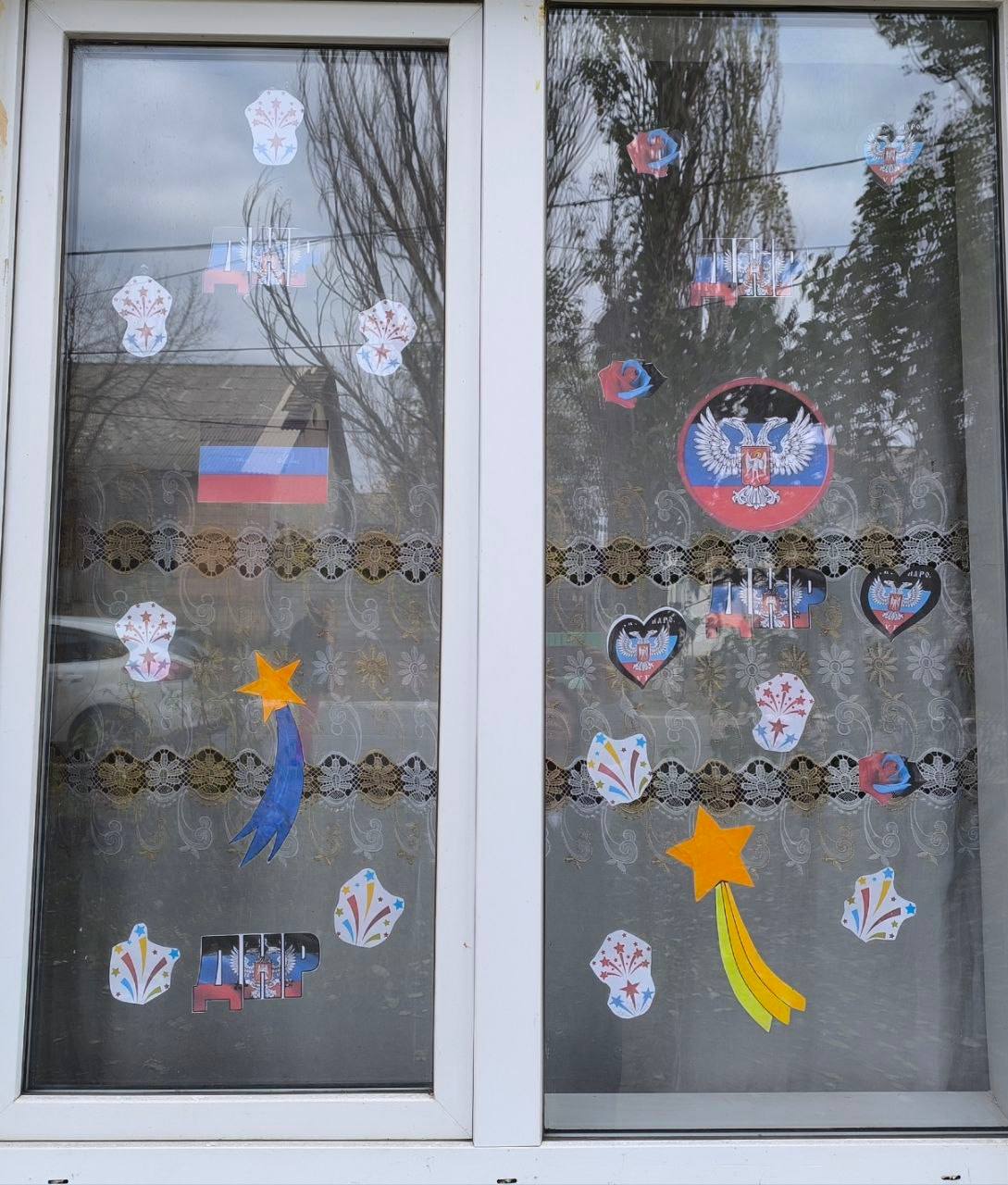 В преддверии одного из самых значимых для нашего региона праздников — Дня флага Донецкой Народной Республики, учащиеся общеобразовательных школ украсили свои окна яркими тематическими рисунками, открытками и аппликациями.